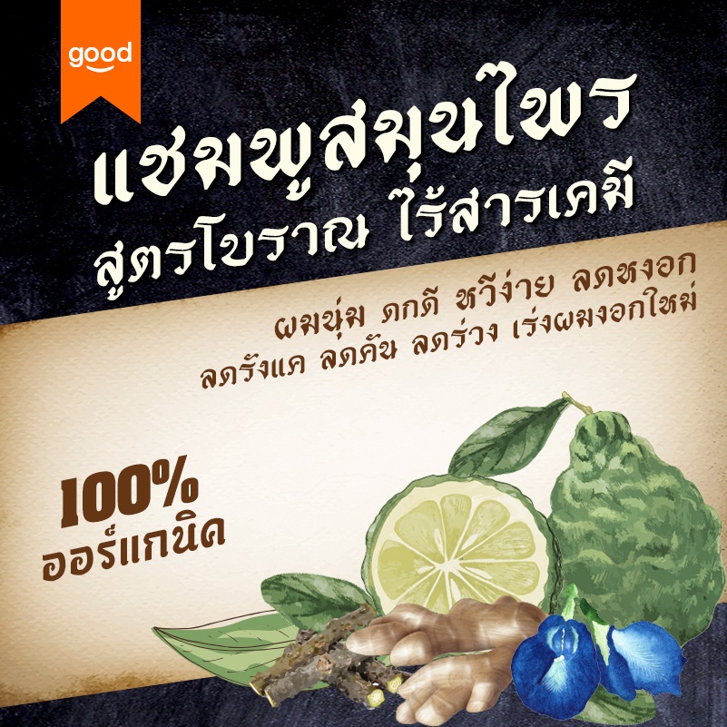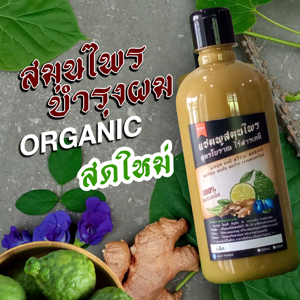 ไร้สารเคมี แชมพูสมุนไพร ORGANIC 500ml มะกรูดใบหมี่อัญชันขิงบอระเพ็ด ลดคัน แชมพูลดผมร่วง ลดรังแค