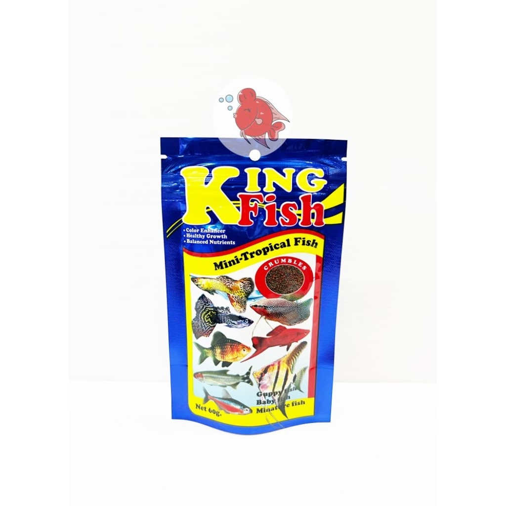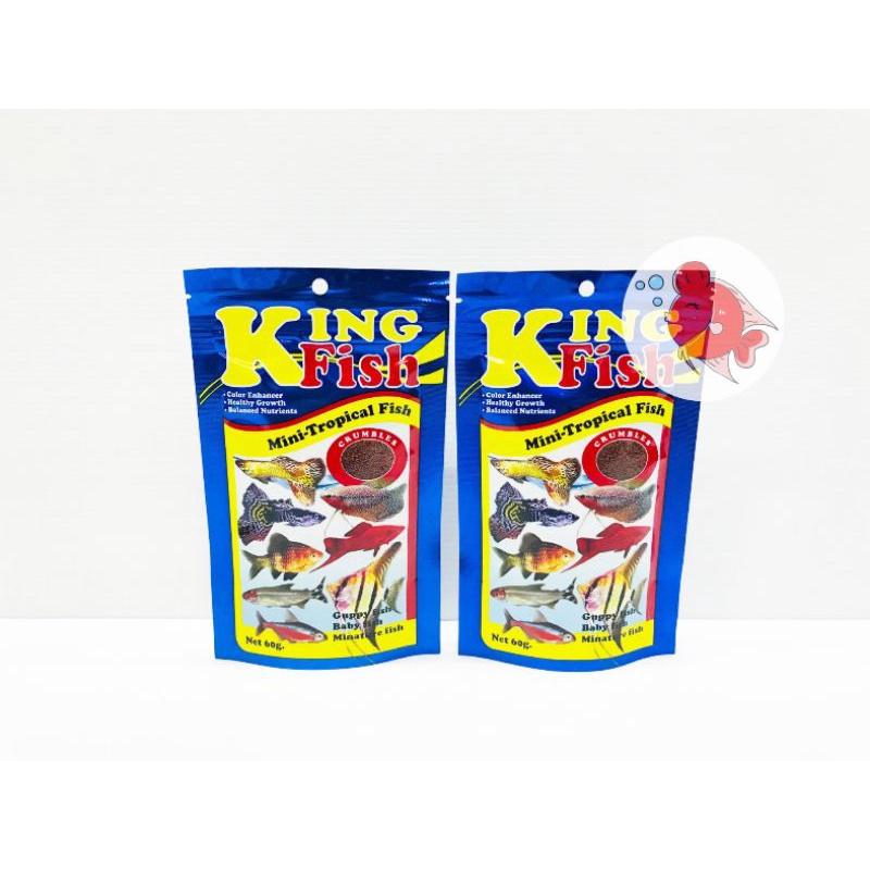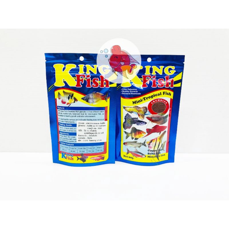 อาหารปลา คิงฟิช King Fish Mini Tropical Fish สีน้ำเงิน (ยกโหล 12ซอง) สำหรับปลาหางนกยูง ปลาสวยงามขนาดเล็ก แบบเกล็ด 60กรัม