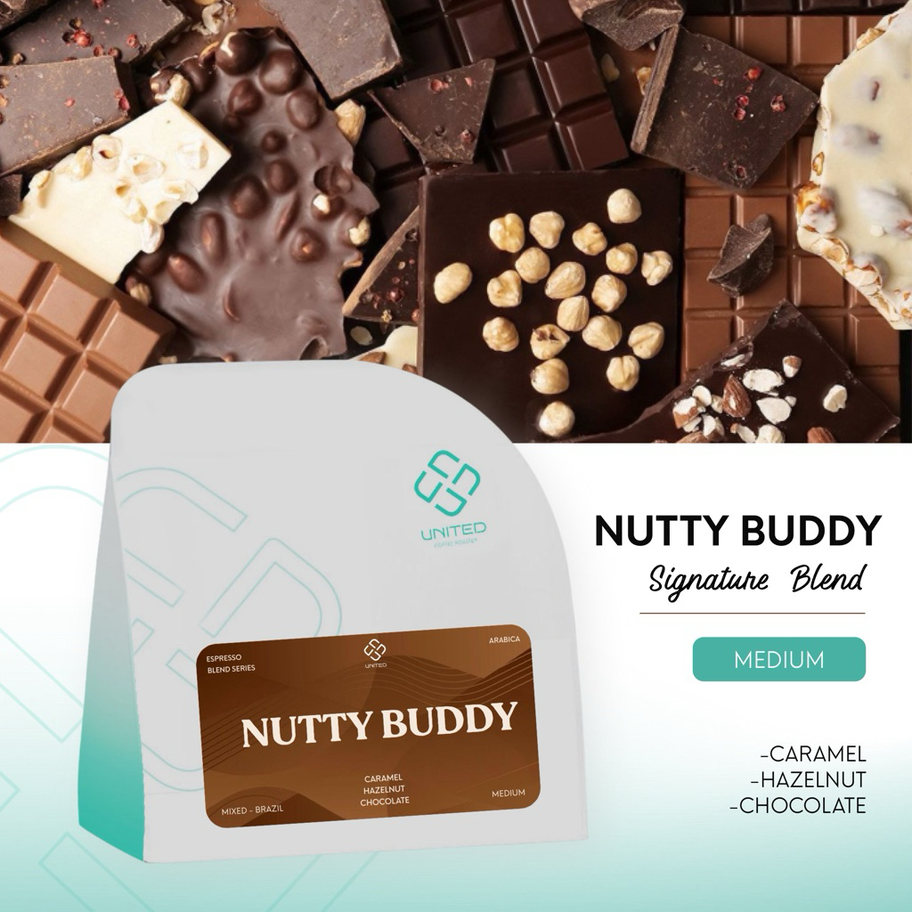 United Coffee Roaster เมล็ดกาแฟเบลน Nutty Buddy คั่วกลาง โดดเด่น Nutty , Caramel แบบชัดเจน