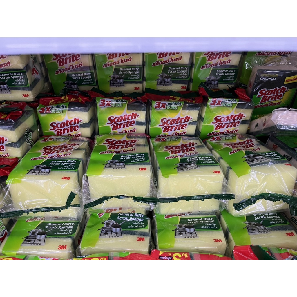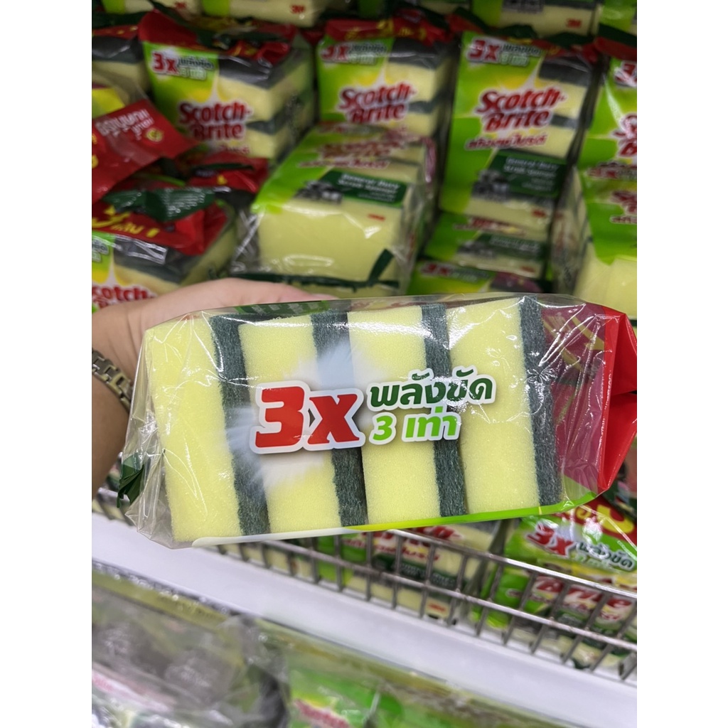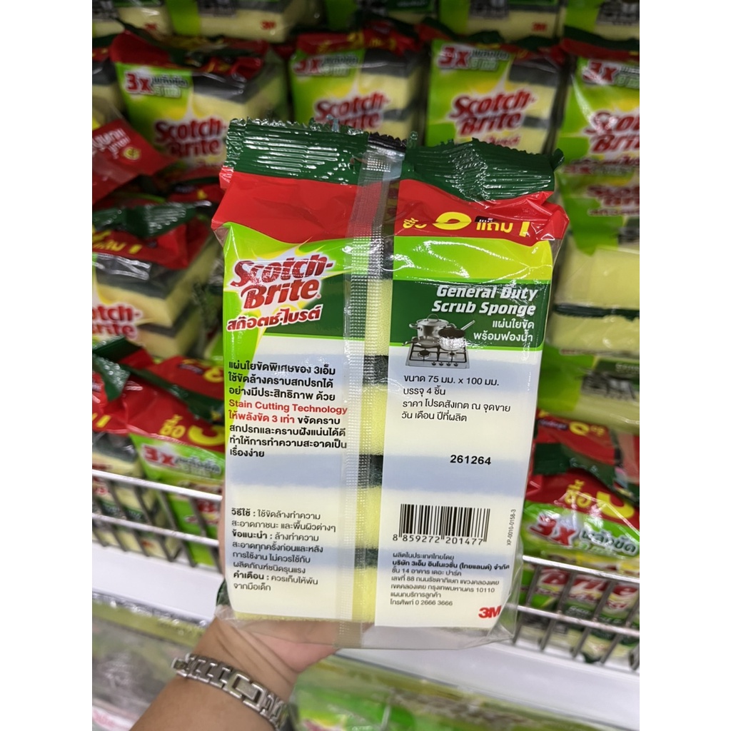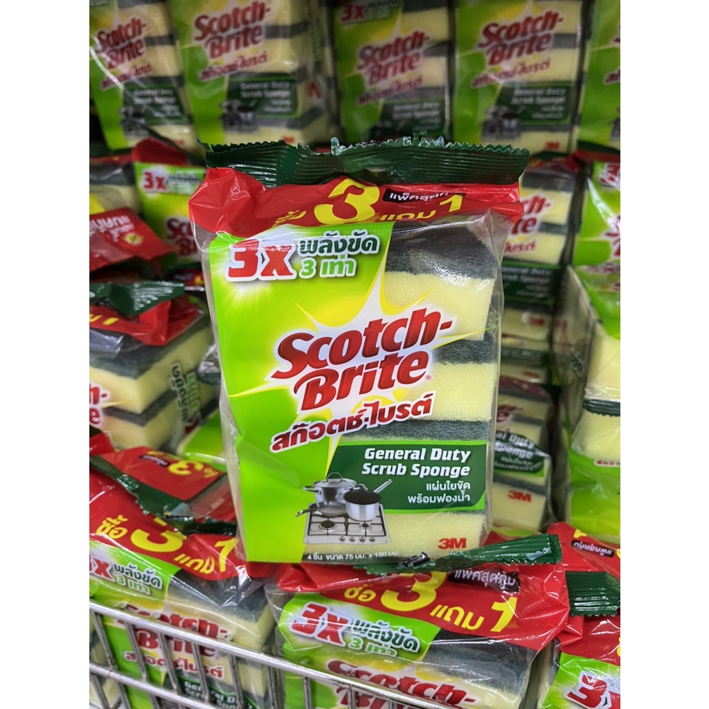 3m สก็อตช์ไบรท์ Scotch Brite ฟองน้ำทำความสะอาด 1แพค มี 4 ชิ้น