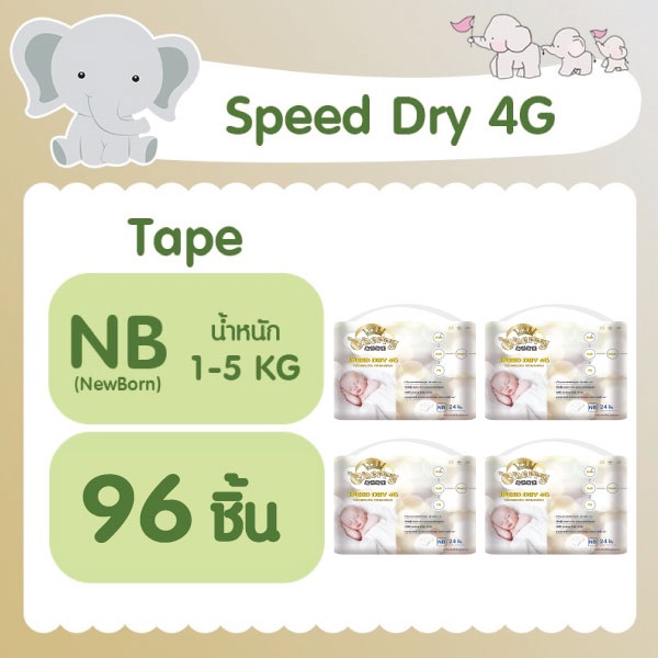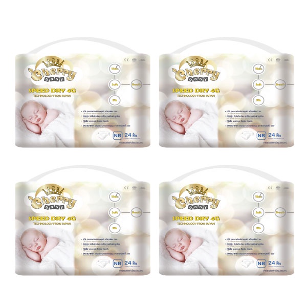 Cherry baby ผ้าอ้อมสำเร็จรูป แพคเล็กทุก Size NB 24 ชิ้น 4 ห่อ 96 ชิ้น
