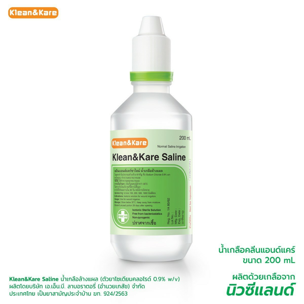 (พกพาง่าย) น้ำเกลือ Klean & Kare น้ำเกลือล้างจมูก Normal Saline 100 mL 200 mL จุกแหลม ฝาแหลม