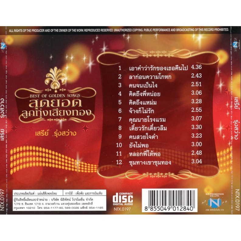 แผ่นซีดี เพลงไทย เสรีย์ รุ่งสว่าง (สุดยอดลูกทุ่งเสียงทอง)