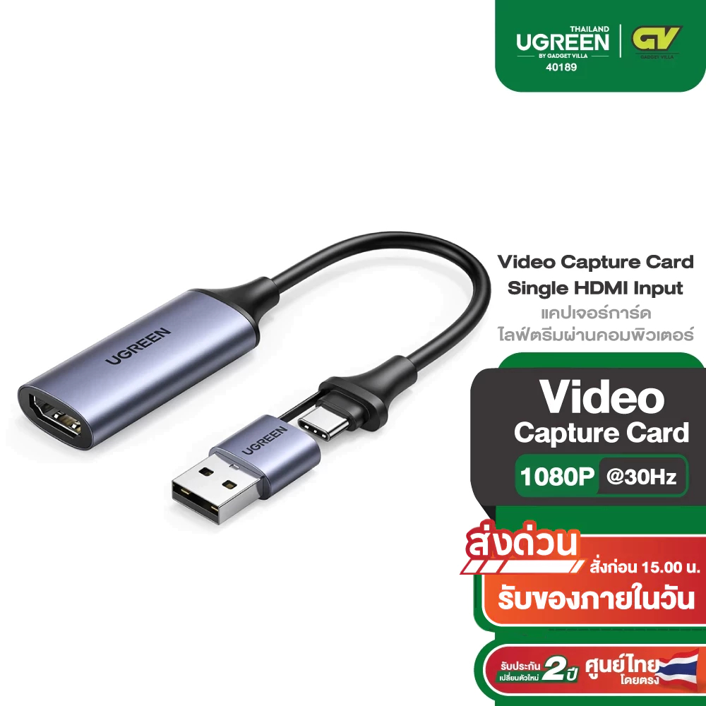 UGREEN รุ่น 40189/25854 Video Capture Card 4K HDMI to USB-A/USB-C HDMI Full HD 1080P USB 2.0 Capture Video and Audio