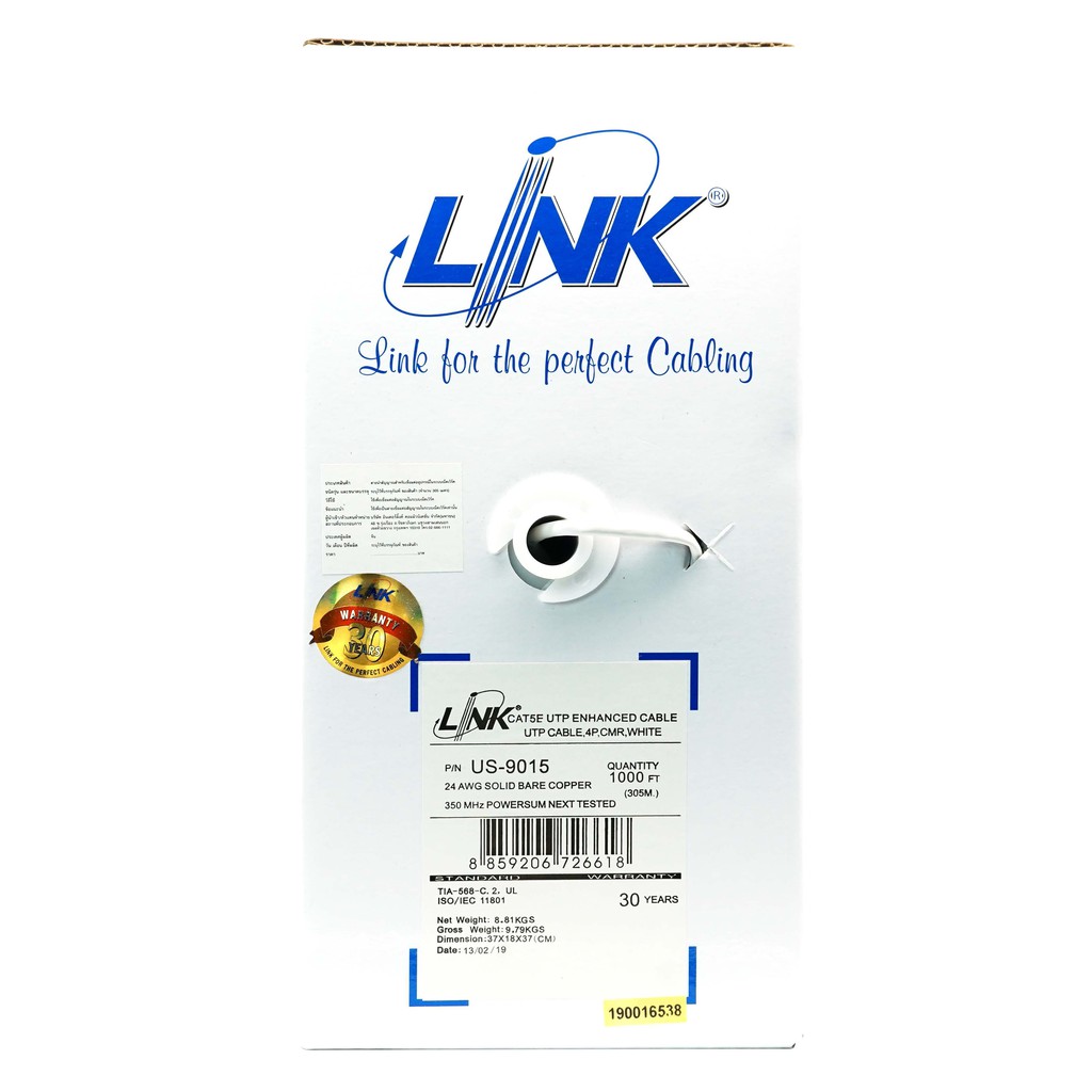 ✔ของแท้✔สายแลน LINK (US-9015LSZH)(US-9015) CAT5e UTP Cable (305m./Box) Original สำหรับภายในอาคาร สายสีขาว