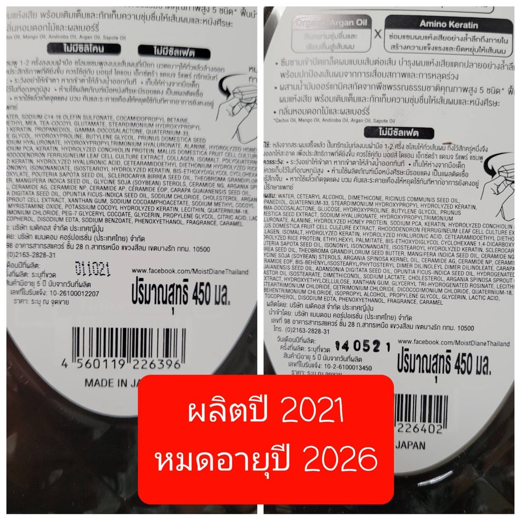Moist Diane Extra Damage Repair สูตรพิเศษ สำหรับฟื้นฟูและบำรุงเส้นผมที่แห้งเสีย แชมพู และ ทรีทเม้นท์ ขนาด 450 มล.