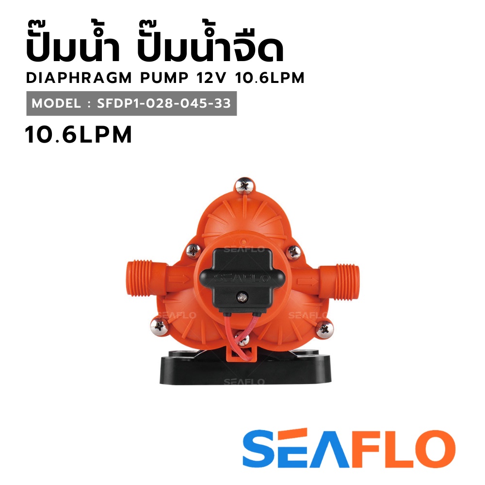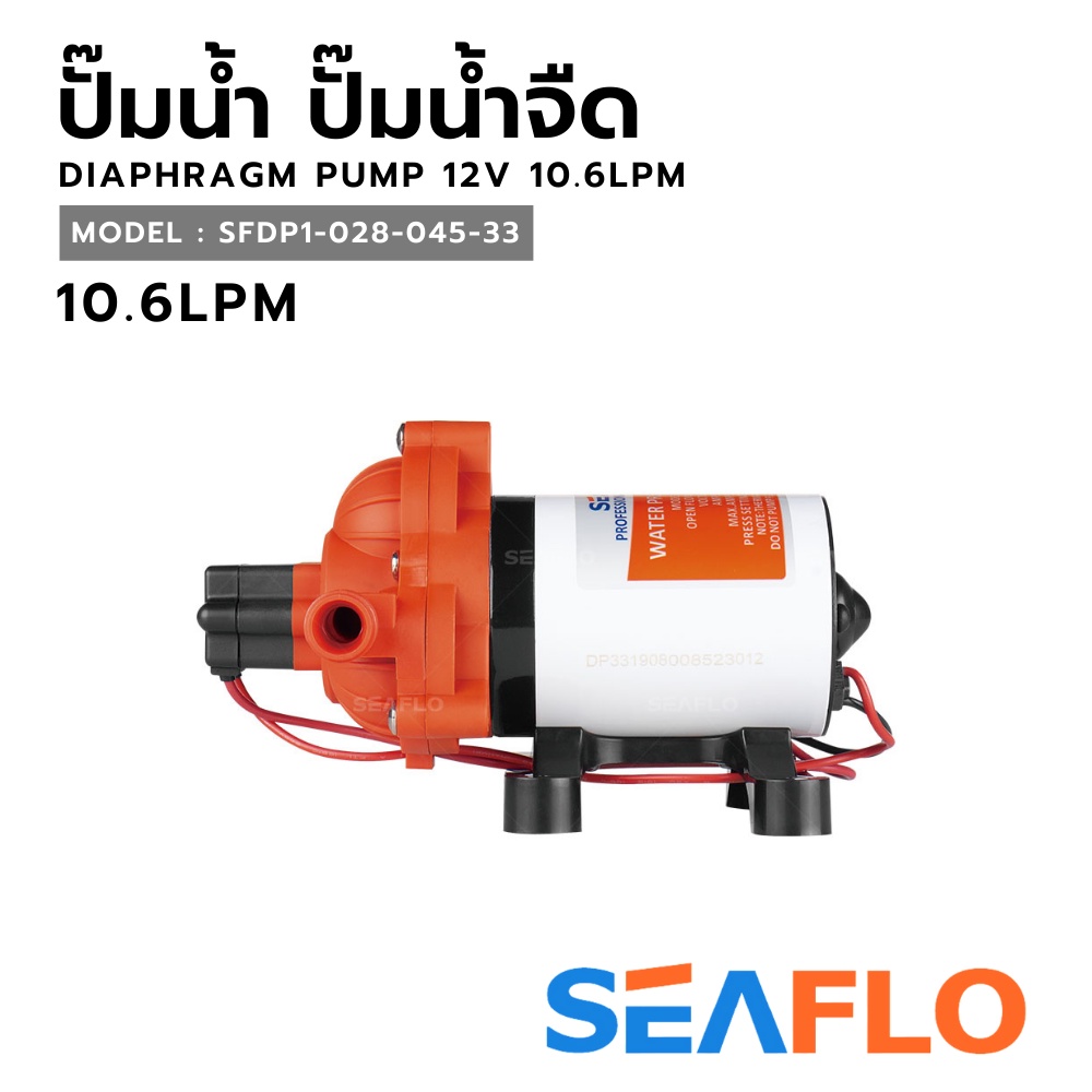SEAFLO ปั๊มน้ำจืด DC 12V ไดอะแฟรมแรงดันสูง อัตโนมัติ 10.6LPM (10.6–11.3 ลิตร/นาที) ซีรี่ย์ 33 SFDP1-028-045-33 ของแท้