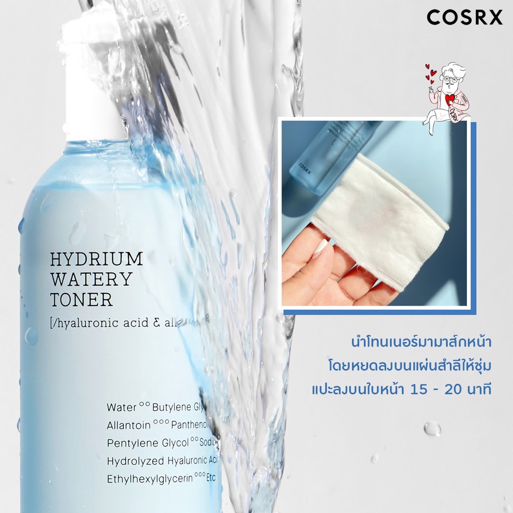 COSRX Hydrium Watery Toner 150ml โทนเนอร์เติมน้ำให้กับผิว ช่วยคงความชุ่มชื้นยาวนาน ด้วย Vitamin B5 และ Hyaluronic Acid