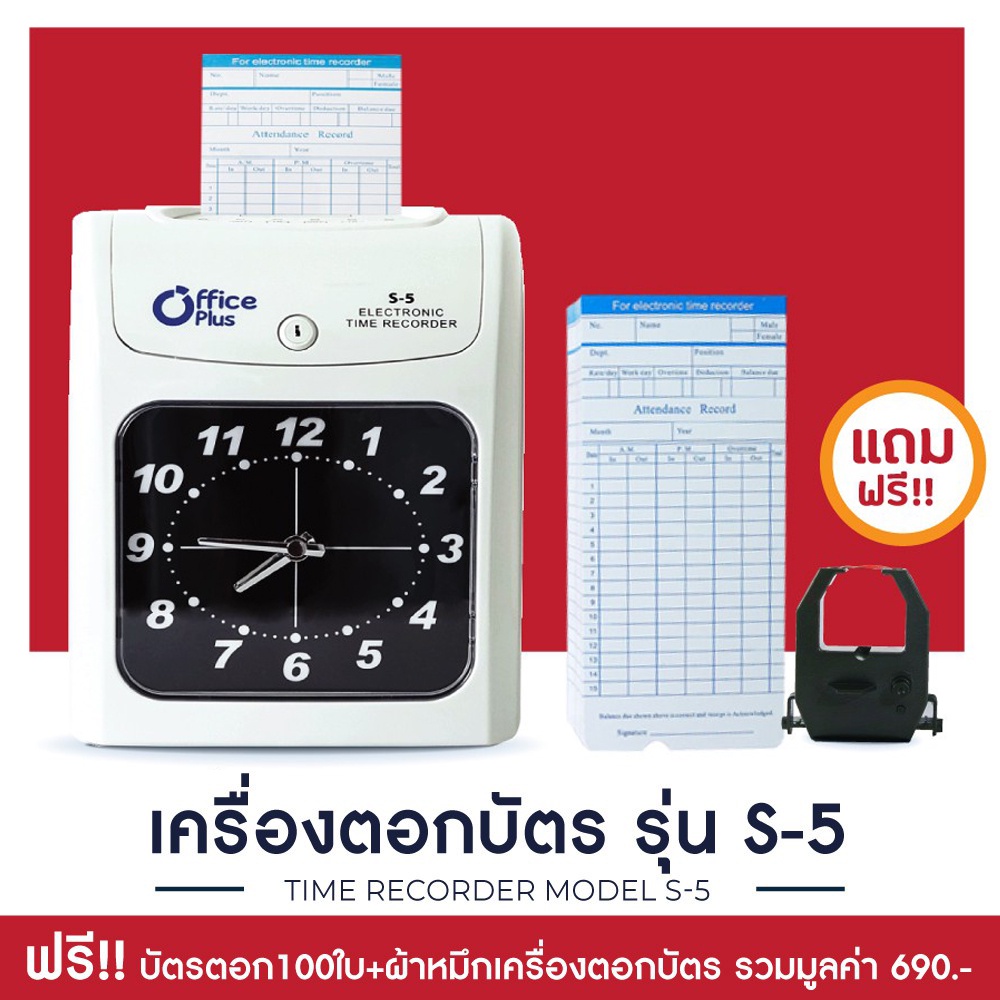 Office Plus เครื่องตอกบัตร Time Recorder รุ่น S-5 แถมฟรี! บัตรตอก 100 ใบ+ผ้าหมึกเครื่องตอกบัตร 1 กล่อง