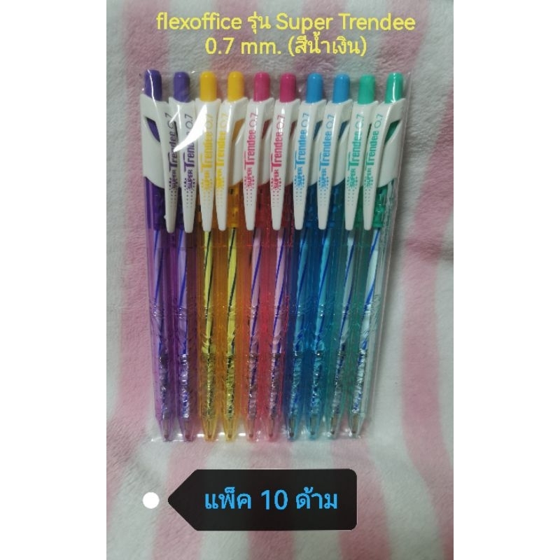 ปากกาลูกลื่น flexoffice แบบกด 0.7มม.รุ่น Super Trendee เขียนลื่นพิเศษ (สีน้ำเงิน, สีแดง) 10 ด้าม
