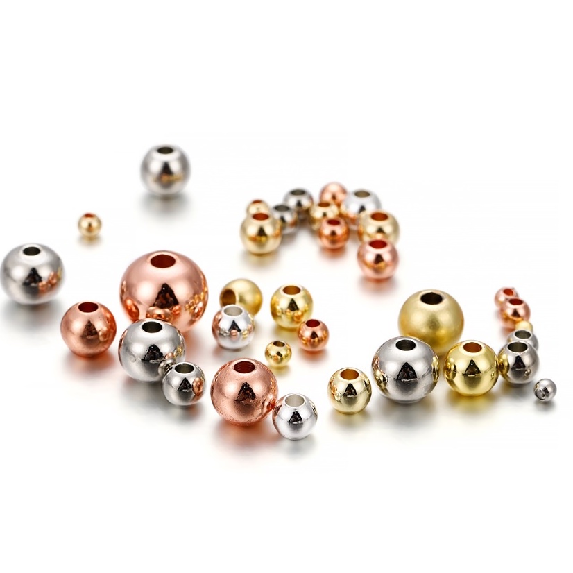 St.kunkka 2-8 มม. 10-100 ชิ้น/ห่อ สแตนเลส ลูกปัดทอง 18k ลูกปัดโลหะคุณภาพสูงที่จะไม่จางหาย