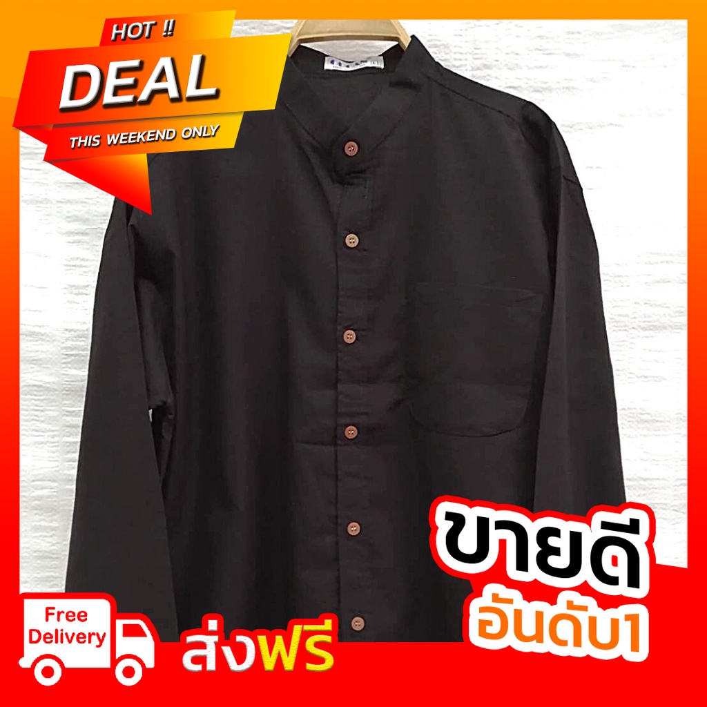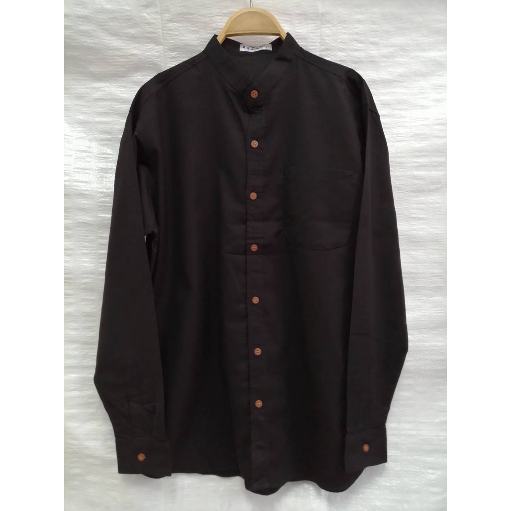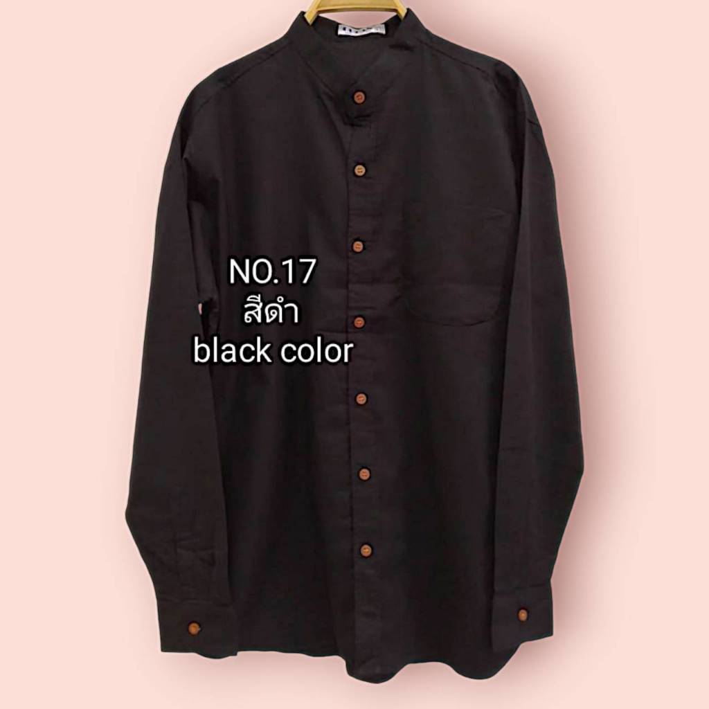 เสื้อเชิ้ตคอจีนแขนยาว ผู้ชายสีดำ ผ้าอ๊อกซฟอร์ด