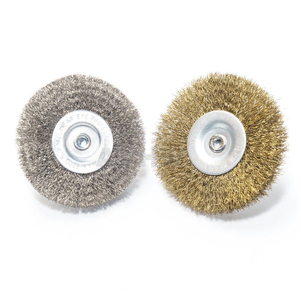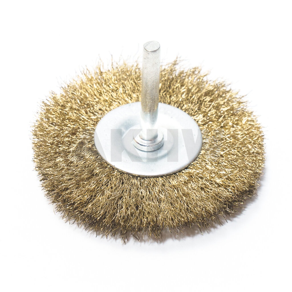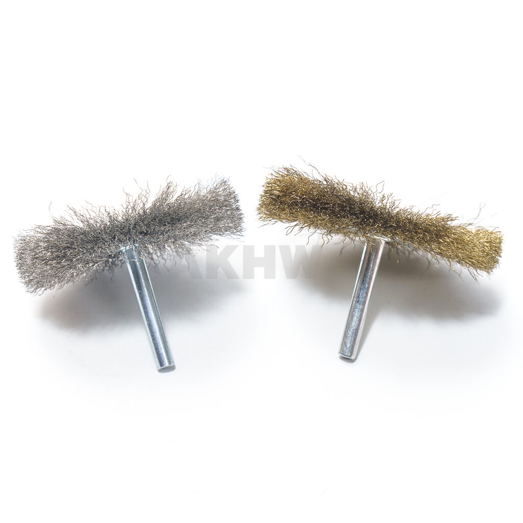 แปรงลวดกลมมีแกน Kingsman 3"x10x6mm ลวดชุบทองเหลือง/สแตนเลส ใช้กับสว่าน [ขายส่ง]