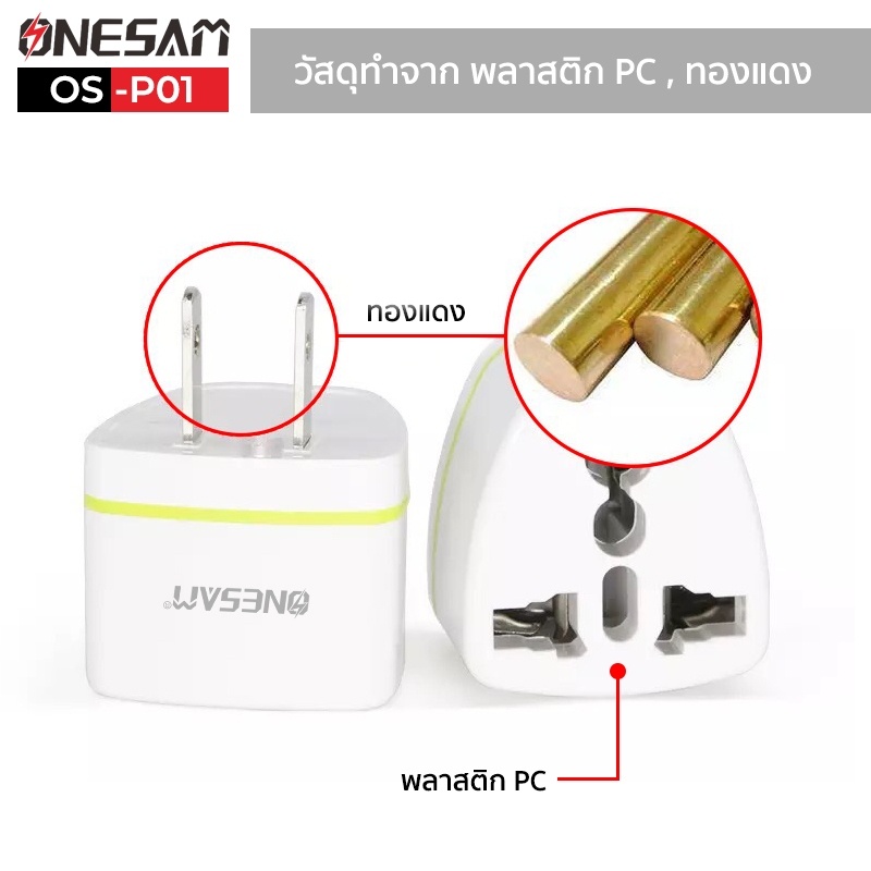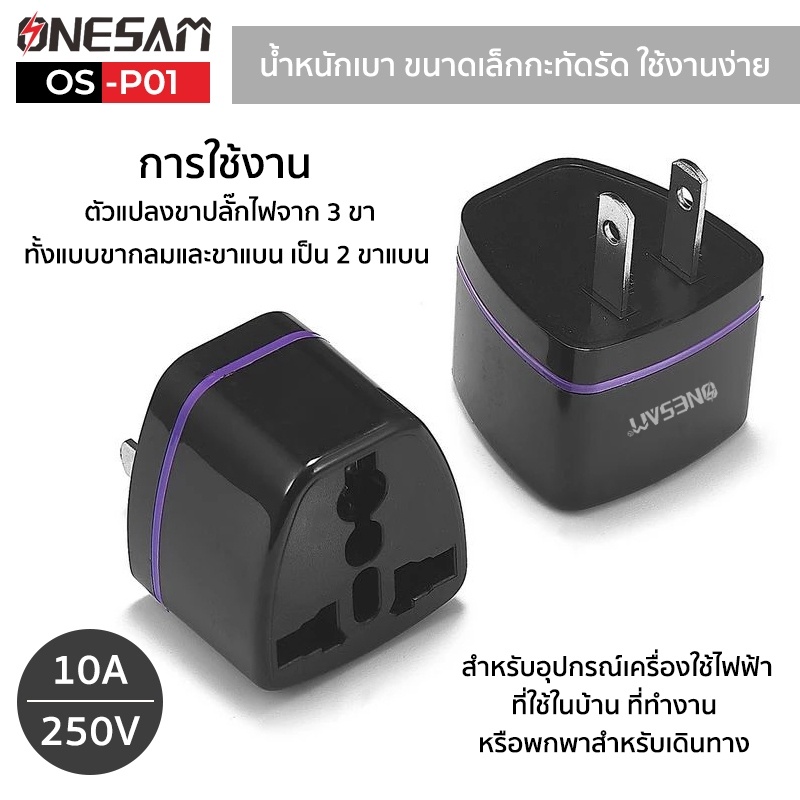 อแดปเตอร์ตัวแปลงขาปลั๊ก ONESAM รุ่น OS-P01 ขาปลั๊กแปลงไฟจาก 3 ขาเป็น 2 ขาแบน (มี 2 สี ดำ,ขาว)*เฉพาะอแดปเตอร์ไม่มีกล่อง*