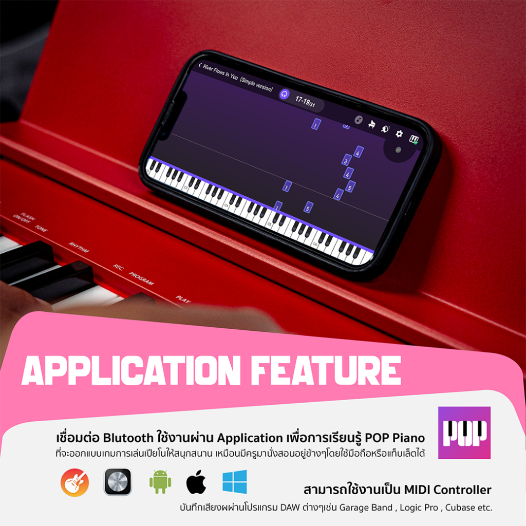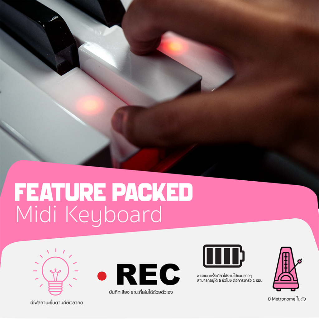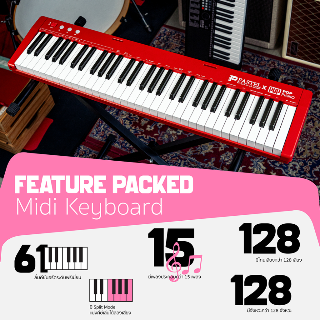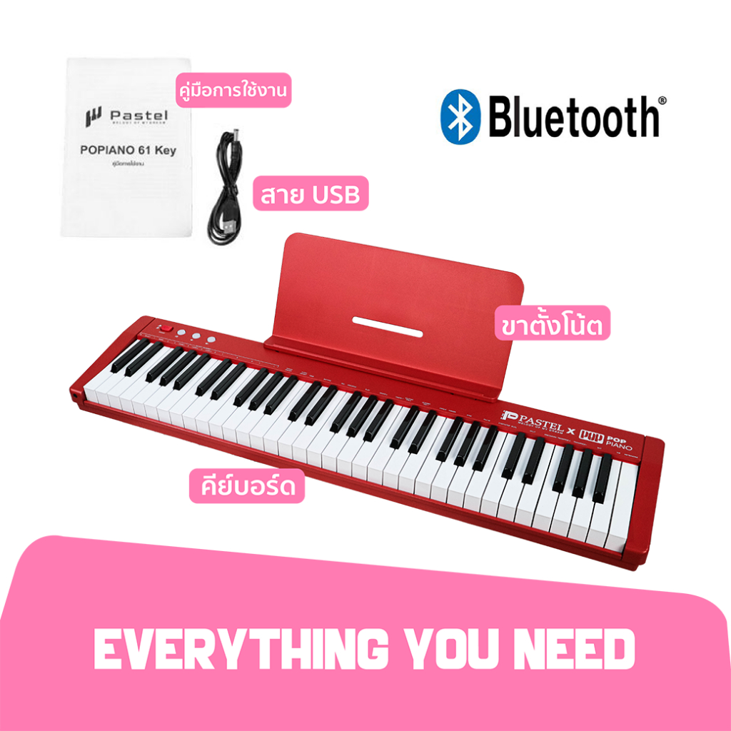 Pastel POPPIANO 61 คีย์บอร์ด เปียโน 61คีย์ พร้อม Touching Key มีแบตเตอรี่ MIDI Bluetooth | Piano Keyboard Organ Electone