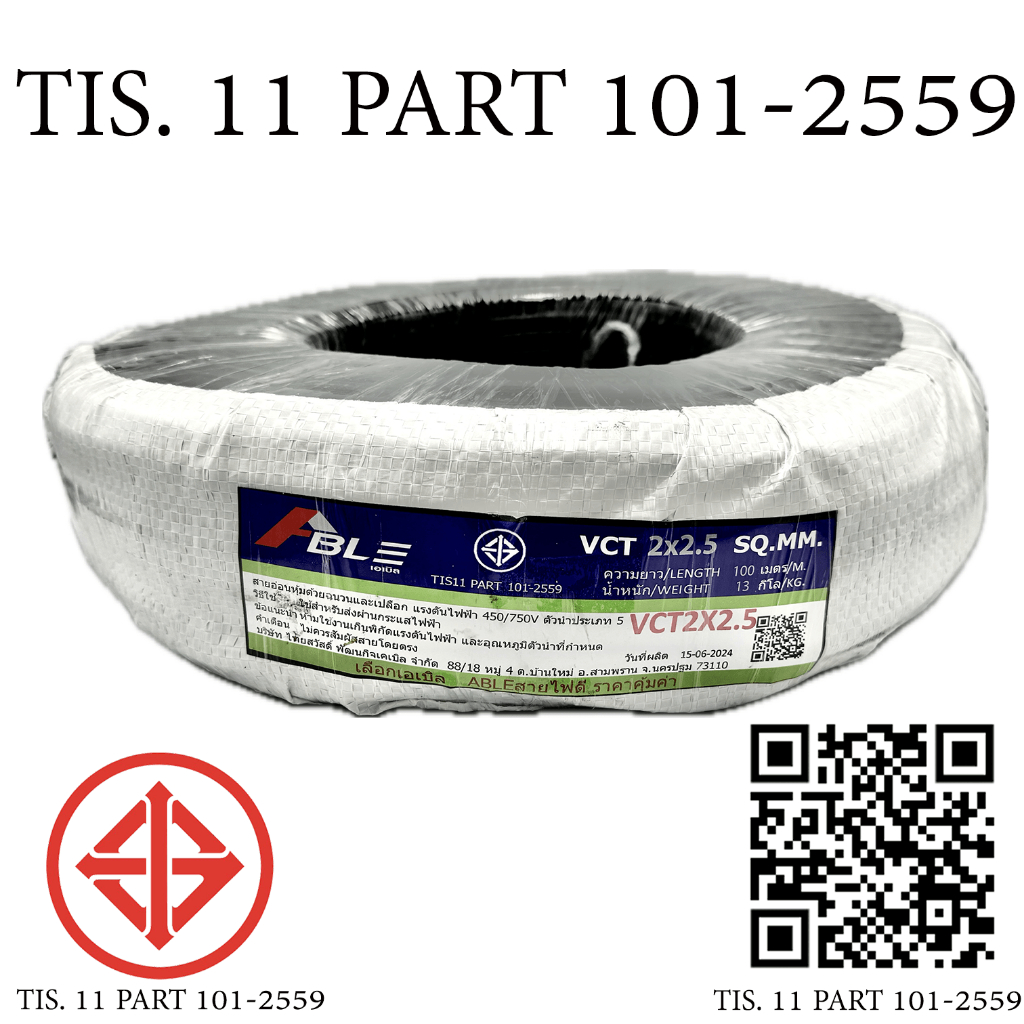 ABLE สายไฟ VCT 2x2.5 ขด(100เมตร) ดำ มอก