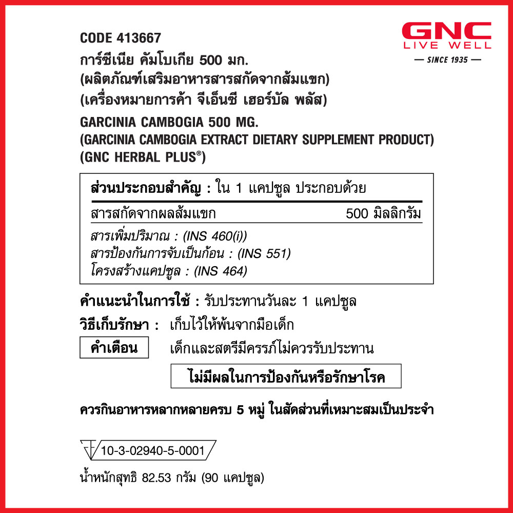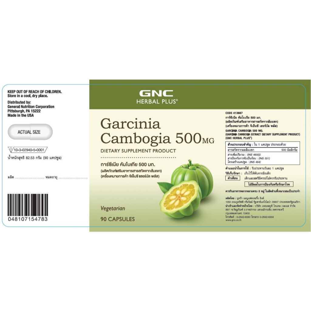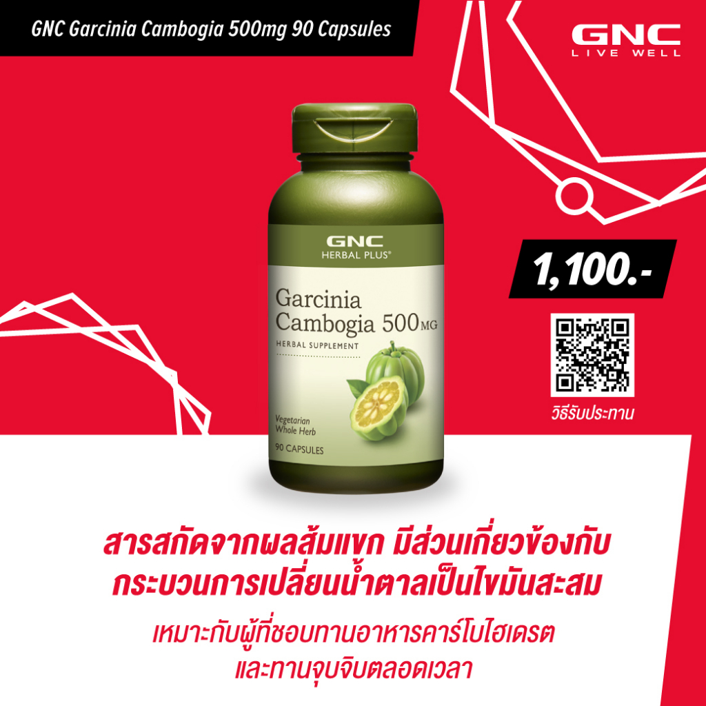 GNC Garcinia Cambogia 500mg 90 Capsules " สารสกัดจากผลส้มแขก X ยับยั้งการเปลี่ยนน้ำตาลเป็นไขมันสะสม"