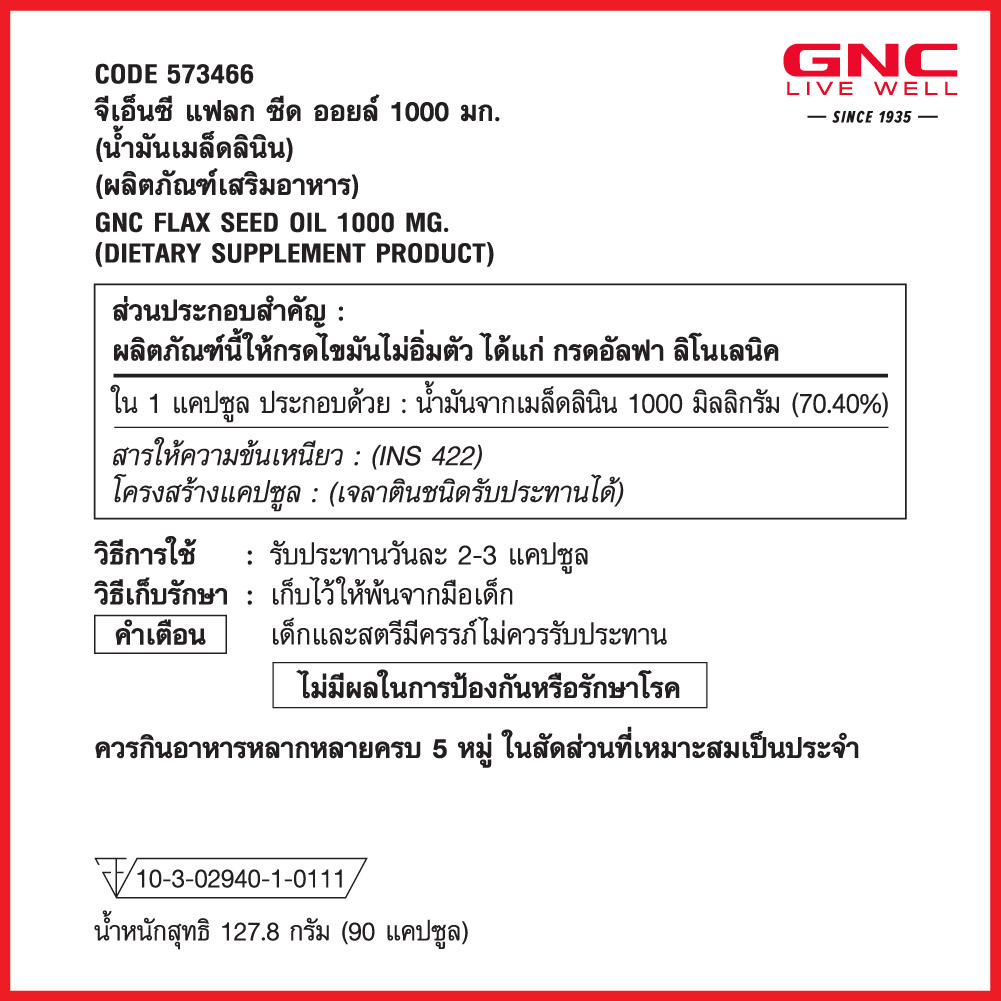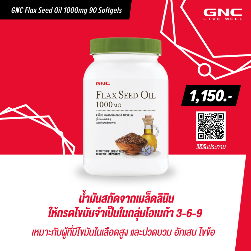 GNC Flax Seed Oil 1000mg 90 Softgels " น้ำมันเมล็ดลินินXลดการเกาะตัวของเกล็ดเลือด"