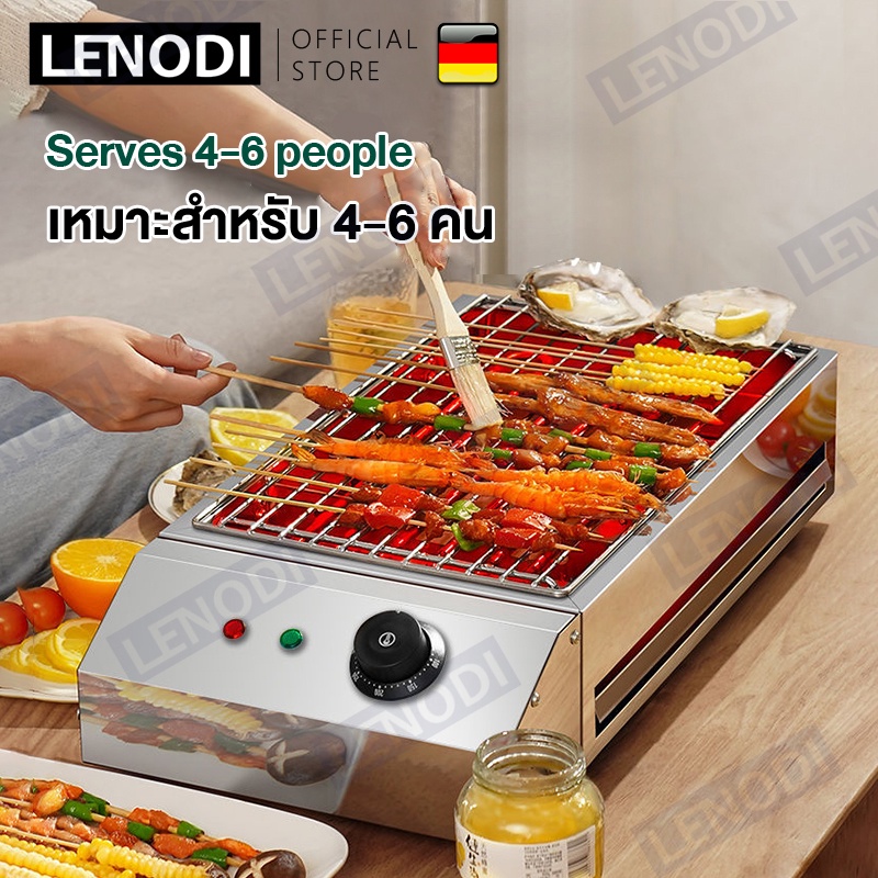LENODI เตาย่างไฟฟ้าเชิงพาณิชย์ ไร้ควัน เตาย่างสแตนเลส ย่างบาร์บีคิว อเนกประสงค์ 3200W