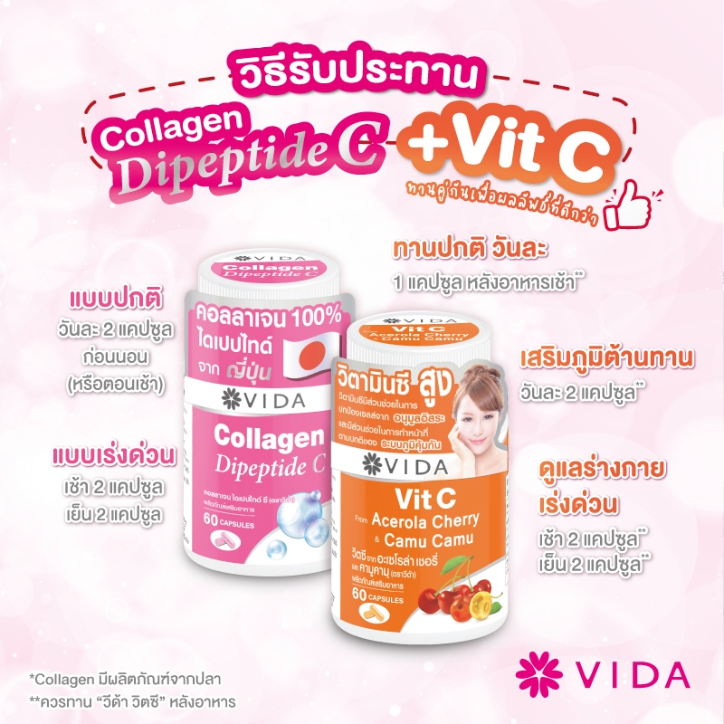 [Booster Set] Vida Collagen Dipeptide C 60 Capsules x Vida Vit C Acerola Cherry & CamuCamu 60 Capsules