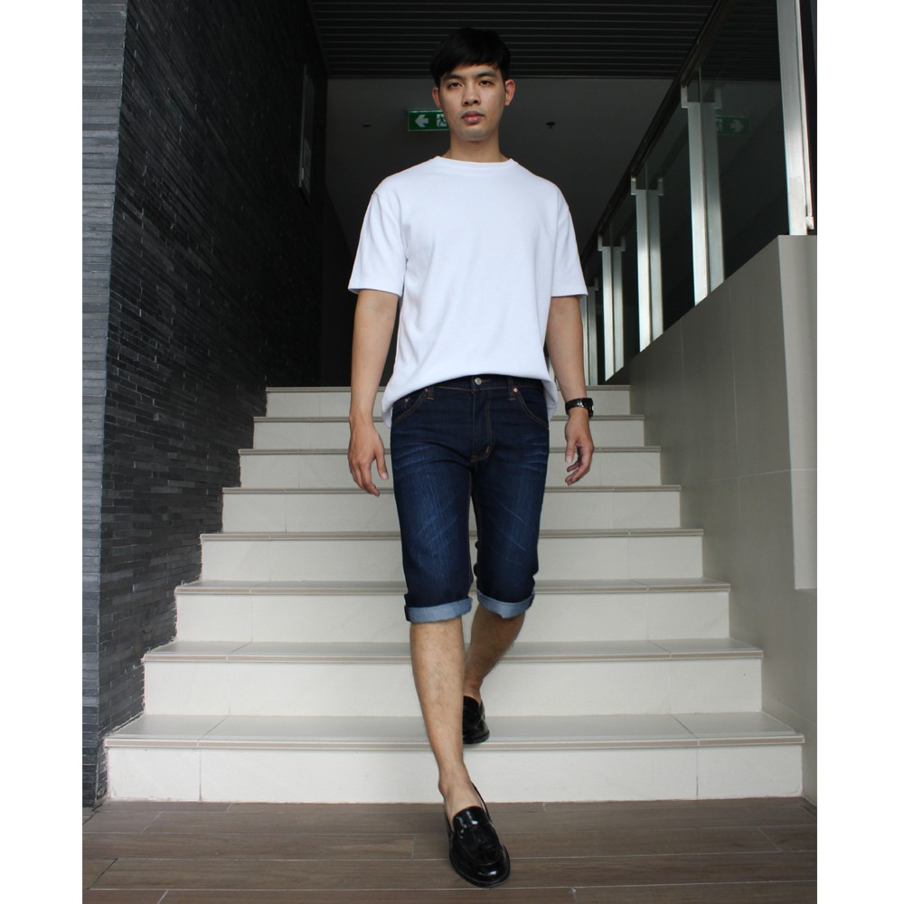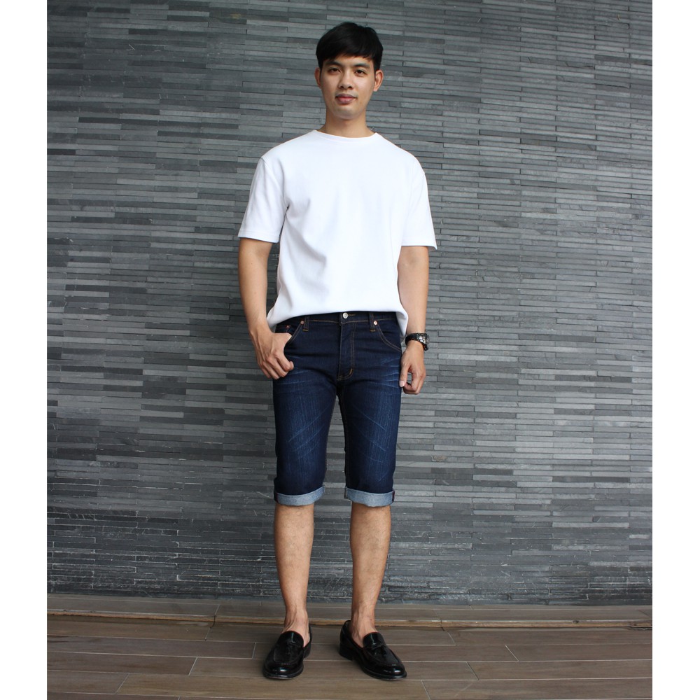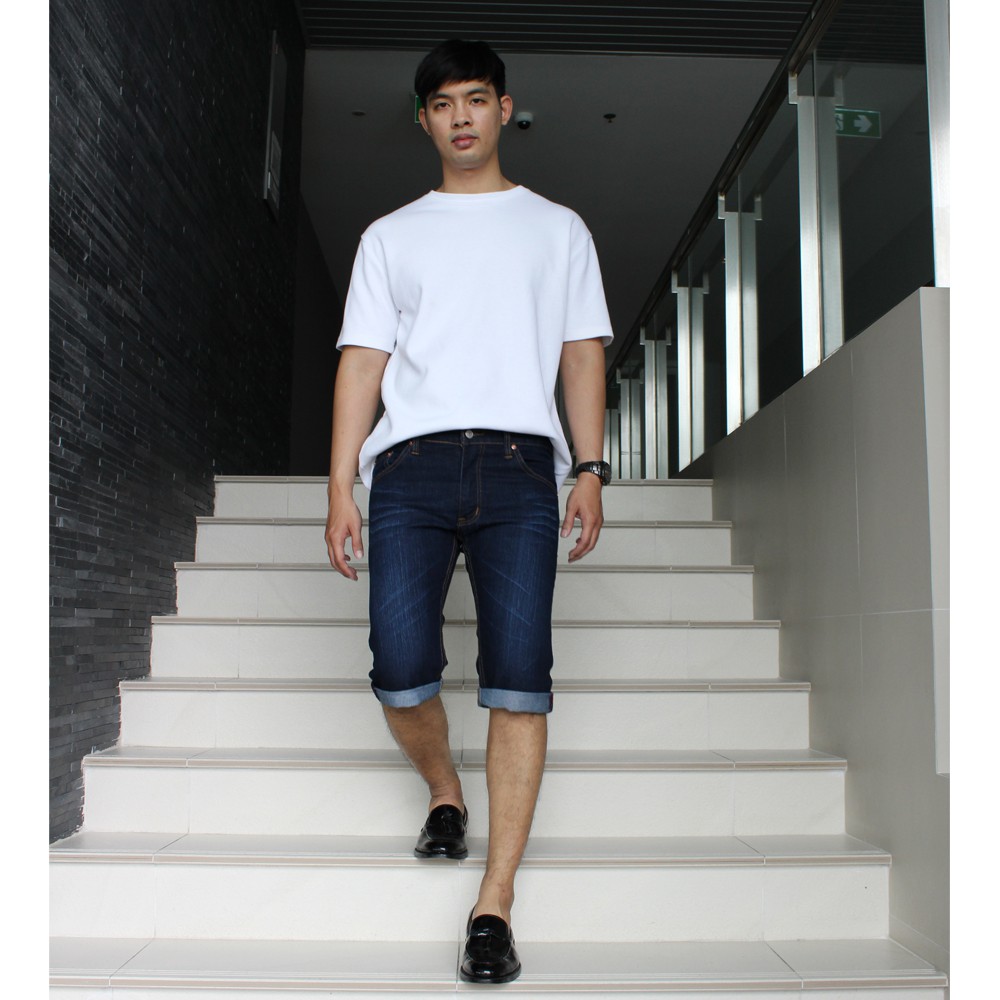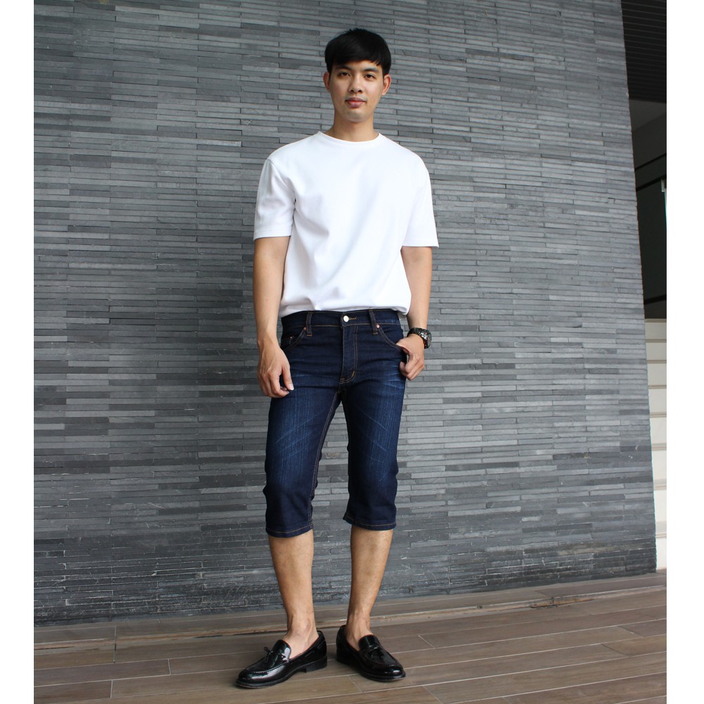 Golden Zebra Jeans กางเกงยีนส์ชายขา 4 ส่วน ผ้ายืดสีฟ้าฟอกลายหนวด(Sizeเอว28-40)
