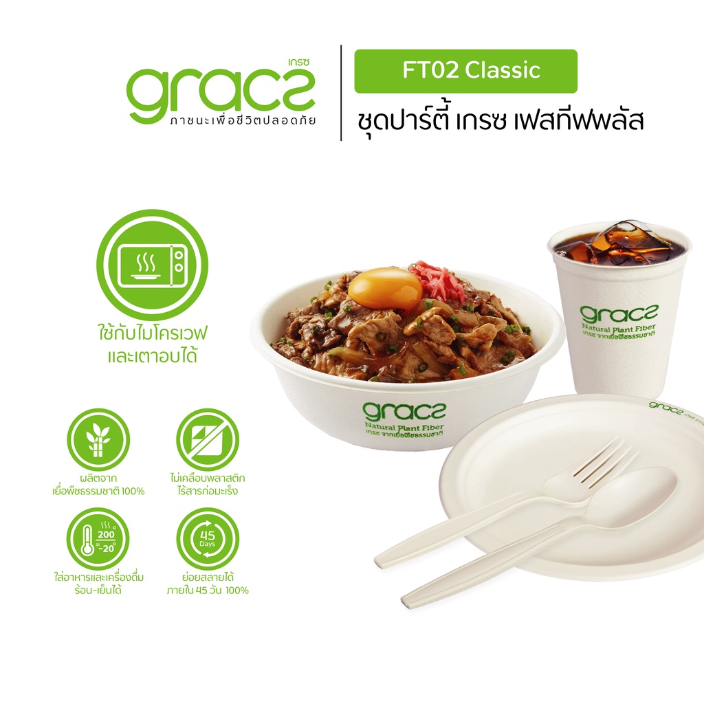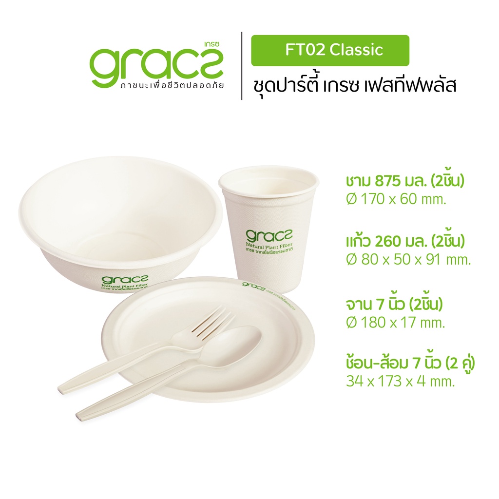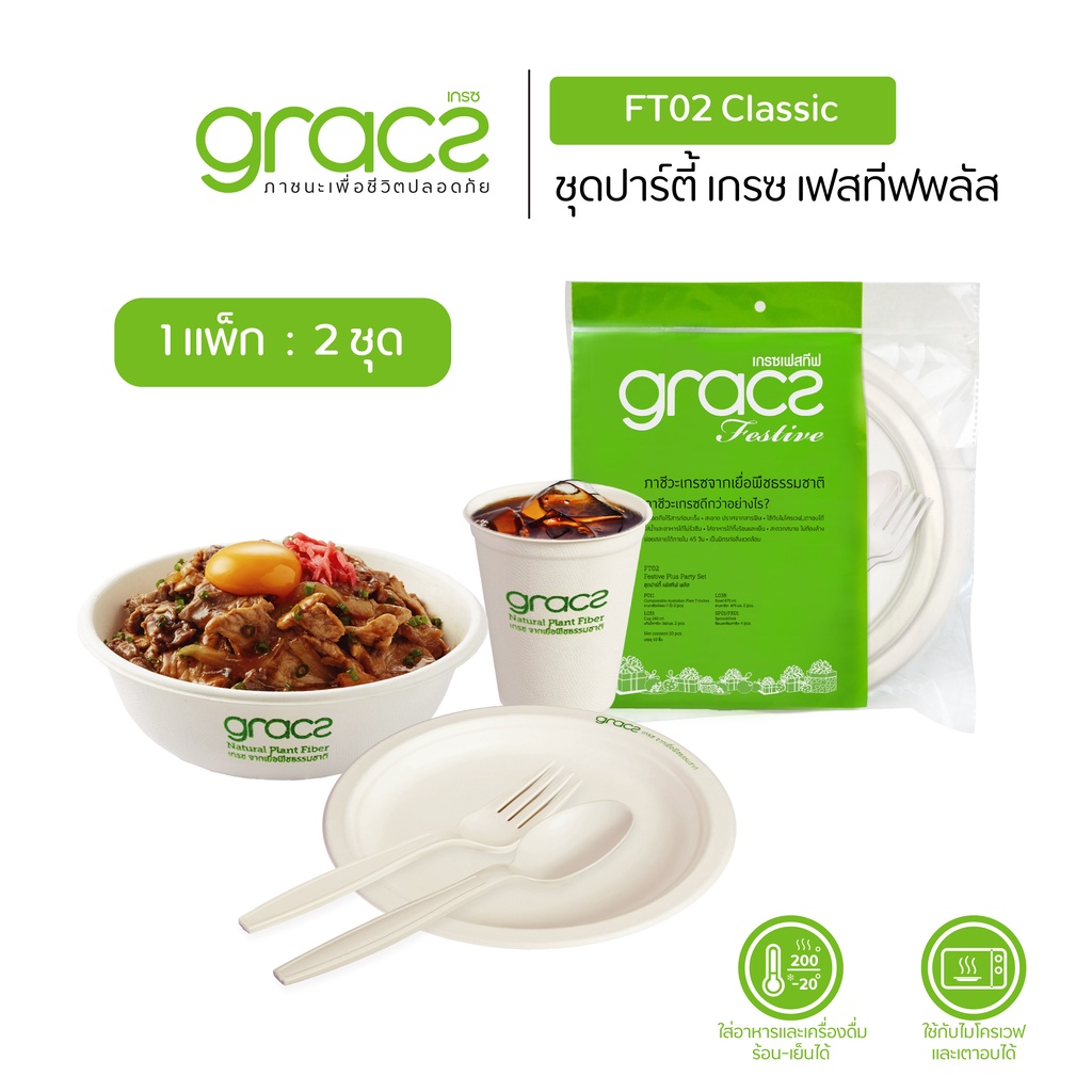 Gracz ชุดปาร์ตี้ชานอ้อย รุ่น FT02 (1 แพ็คมี 2 ชุด) ชามกระดาษ แก้วกระดาษ จานกระดาษ สะดวก ปาร์ตี้ ไม่ต้องล้าง