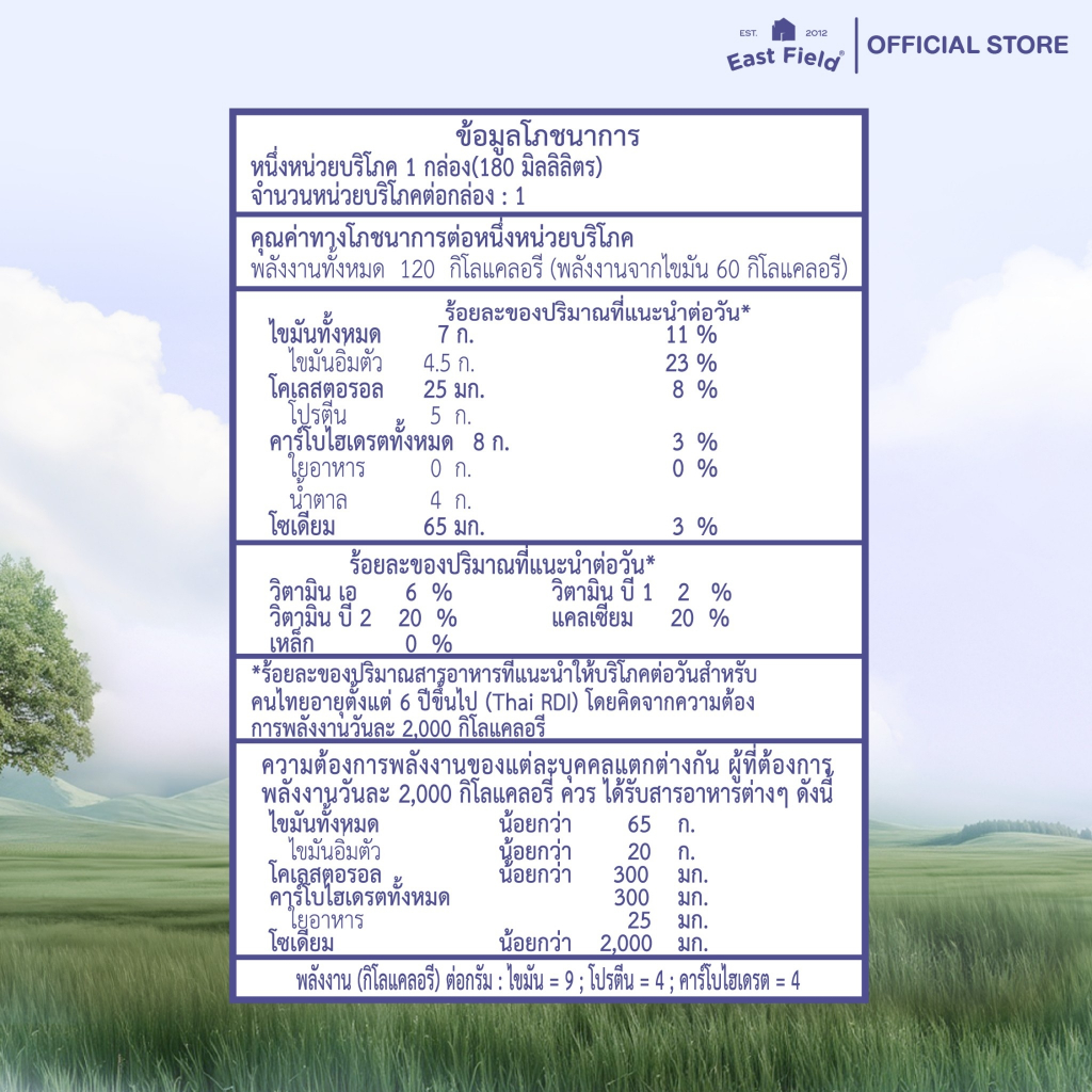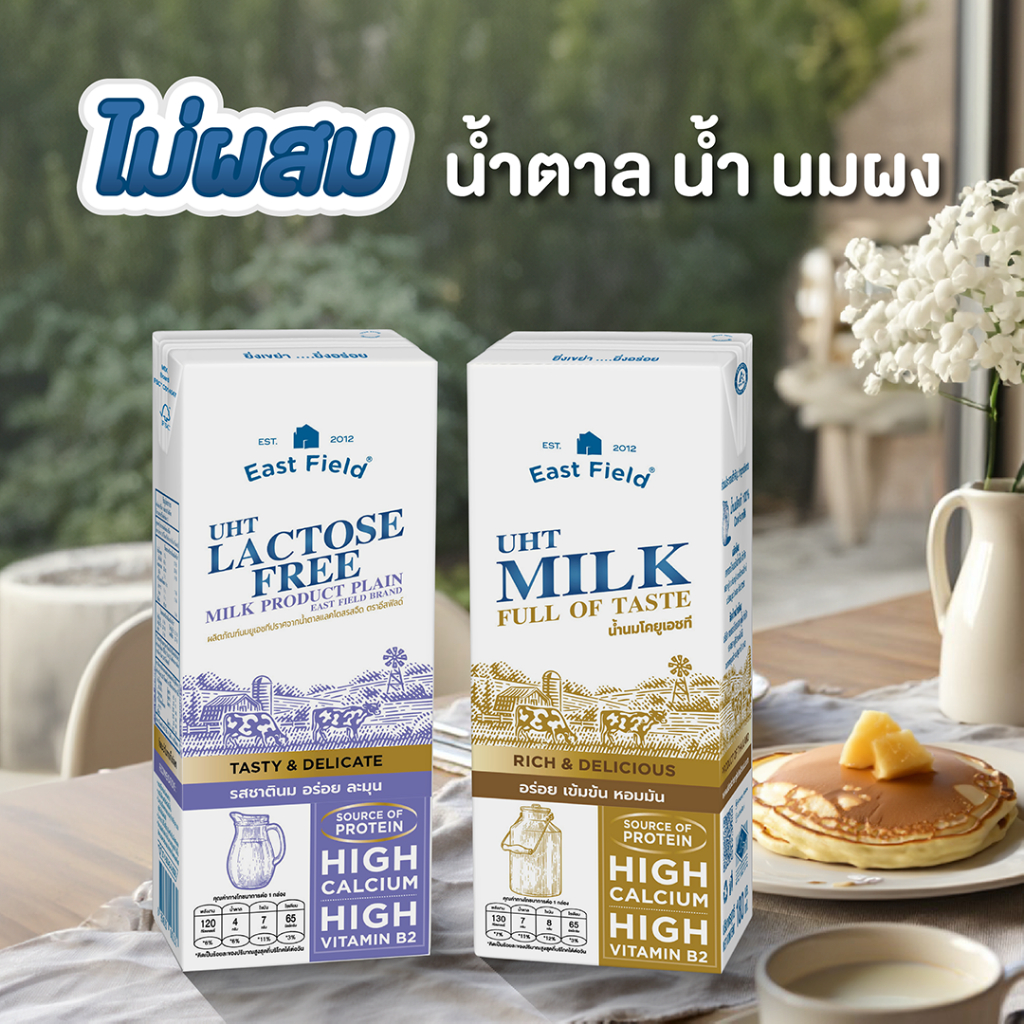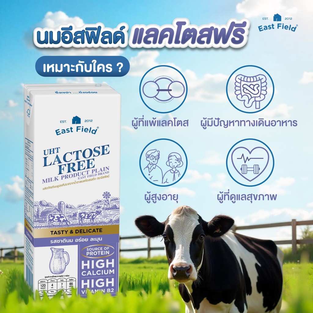(72กล่อง) EAST FIELD LACTOSE FREE นมอีสฟิลด์แลคโตสฟรี UHT ปราศจากน้ำตาลแลคโตส 180 มล.