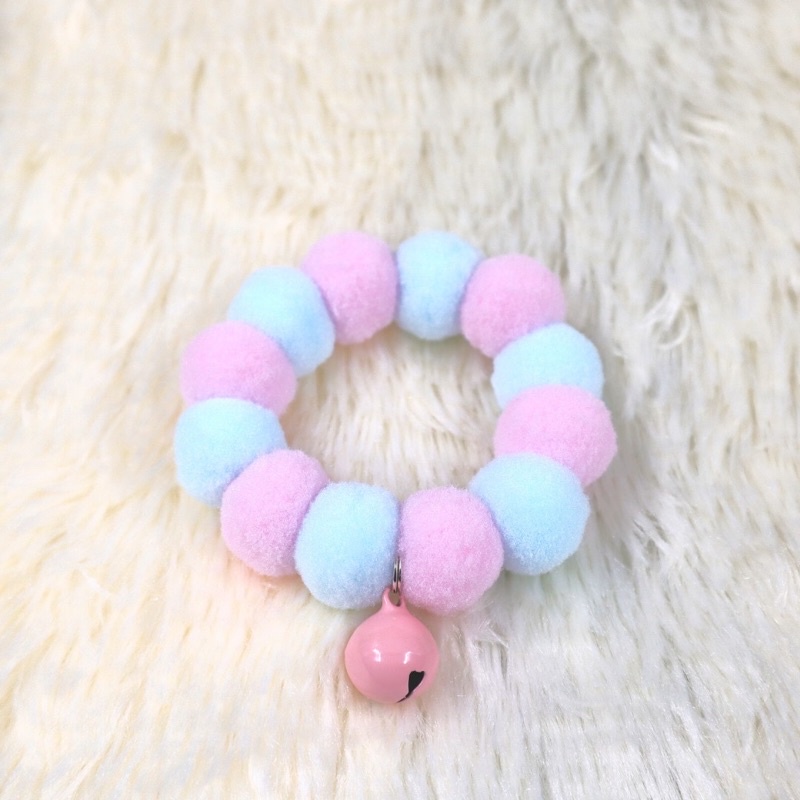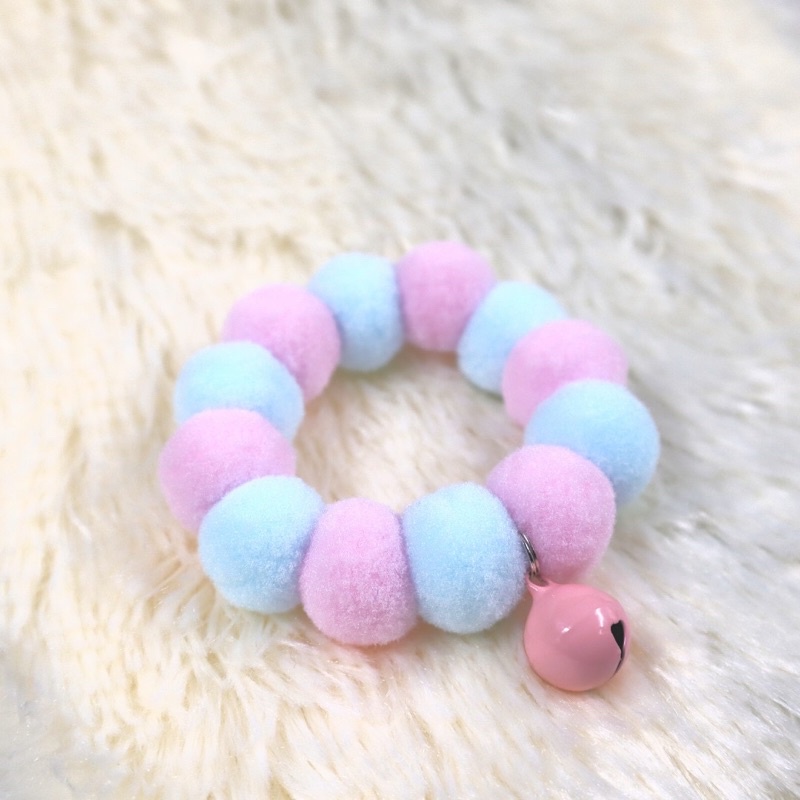 ปลอกคอ Blue-Pink Pastel #2 พรีเมียม ปอม ปอม Collar [Rubber type]