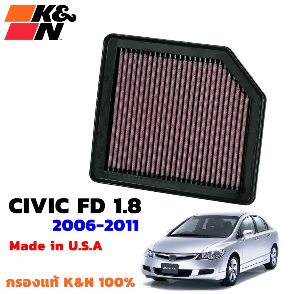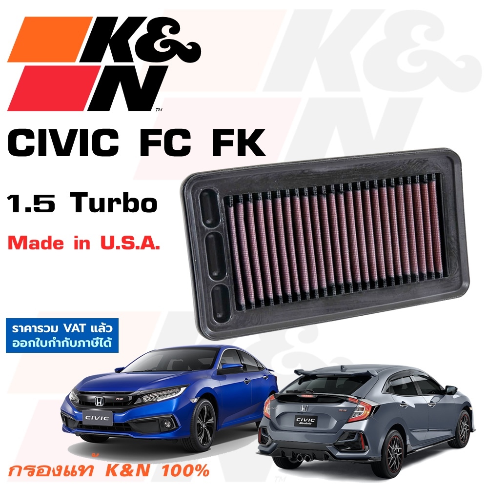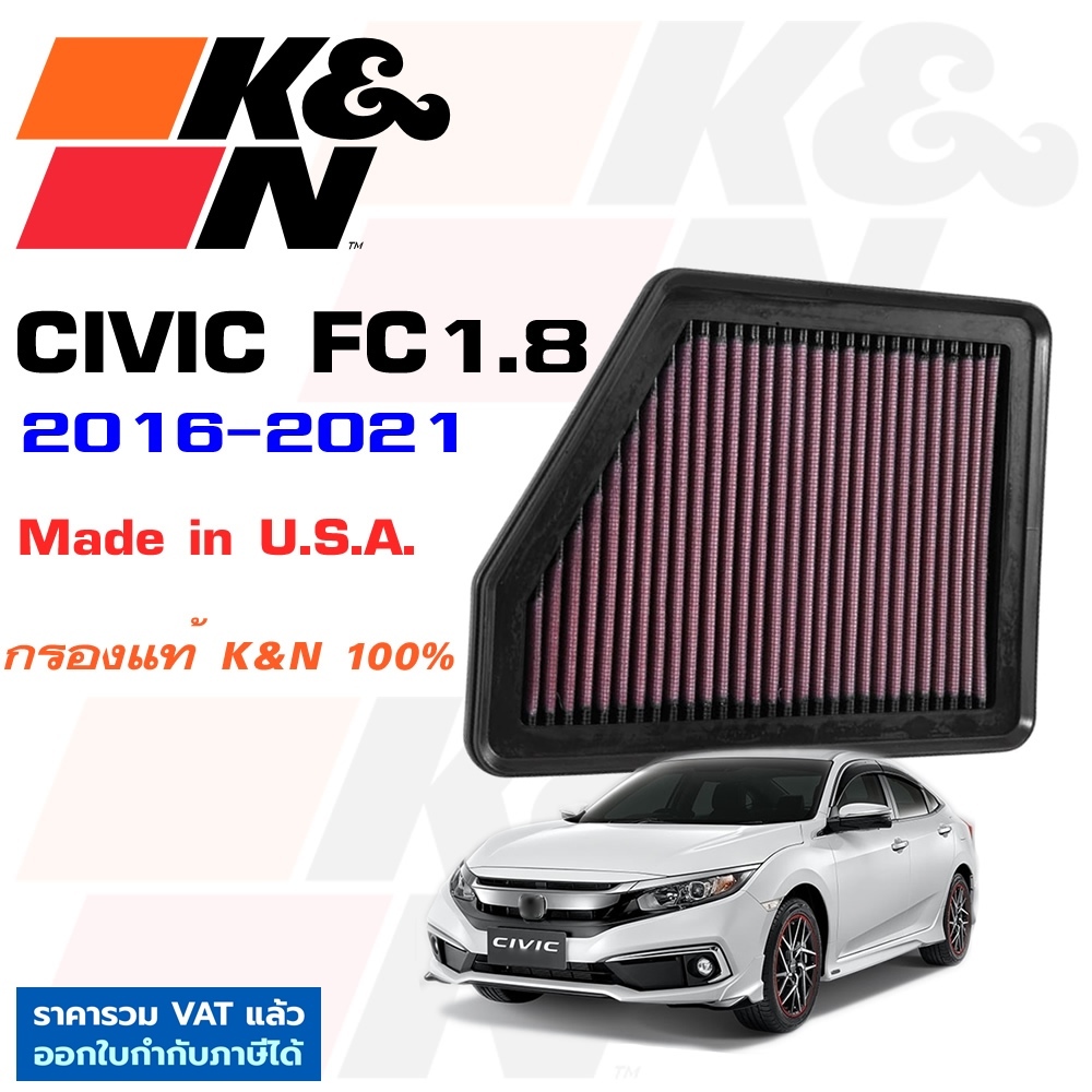 K&N กรองอากาศ Civic FC FK FE FD FB กรองเครื่องยนต์ ใส้กรองอากาศ High-Flow Air Filter แท้ Made in USA