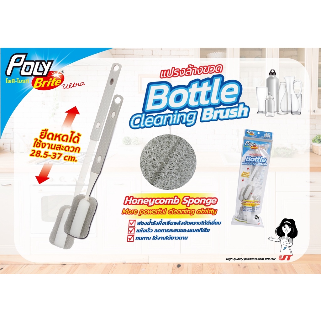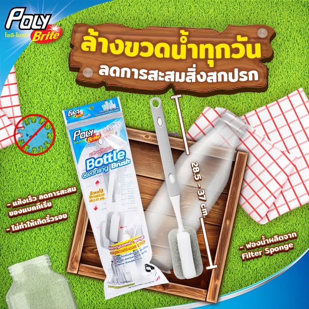 Poly-Brite โพลี-ไบรท์ แปรงล้างขวดด้ามยืดหด แปรงล้างขวดแก้ว ฟองน้ำรังผึ้ง ขัดคราบดี ไม่เป็นรอย ลดแบคทีเรีย