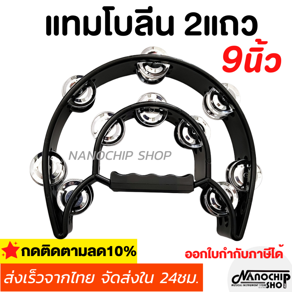 (พร้อมส่ง) แทมโบรีน Tambourine แบบ2แถว ขนาด9นิ้ว ครึ่งวงกลม สองชั้นให้เสียงดังกังวาล