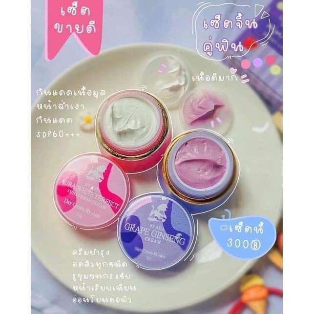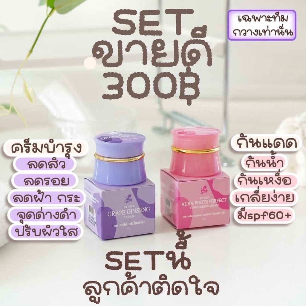 ครีมโสมองุ่น By Asia โสมองุ่น & ครีมกันแดดองุ่น Grape ginseng cream & Aura white sunscreen cream ของแท้