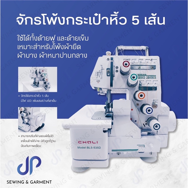 จักรโพ้งกระเป๋าหิ้ว !!ฟรีด้าย 4 หลอด!! จักรโพ้งเล็ก 4 เส้น และ 5 เส้น ยี่ห้อ CHALI