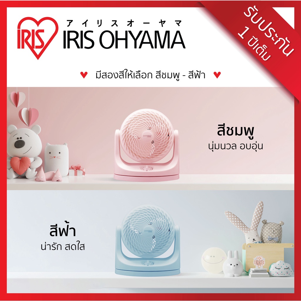 (3 Years warranty) IRIS OHYAMA ไอริส โอยามะ พัดลมหมุนเวียนอากาศ พัดลมตั้งโต๊ะ WOOZOO รุ่น PCF-MKM18 สีชมพู สีฟ้า น่ารัก