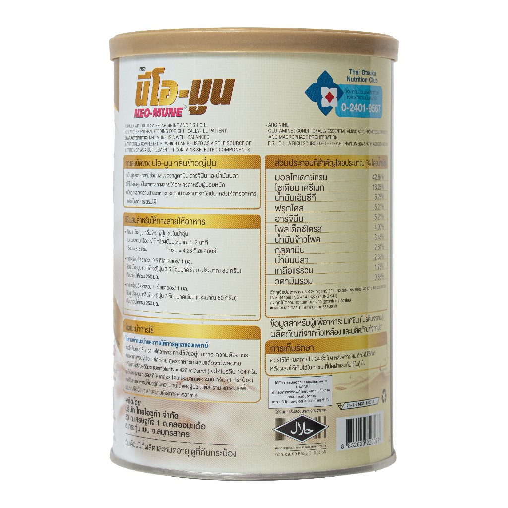NEO-MUNE Japanese Rice Flavor 400 g. นีโอ-มูน กลิ่นข้าวญี่ปุ่น สำหรับผู้ป่วยที่ต้องการโปรตีนและพลังงาน จำนวน 1 กระป๋อง