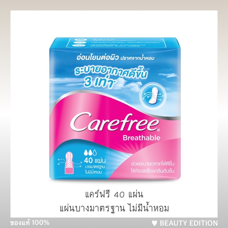 แผ่นอนามัย แคร์ฟรี 40 แผ่น , Carefree ไม่มีน้ำหอม , กลิ่น เฮลทีเฟรช