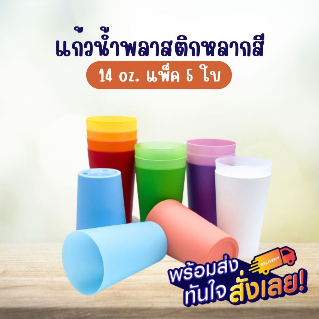 L1 แก้วน้ำดื่ม 14 oz (แพ็ค 5 ใบ) แก้วน้ำพลาสติกหลากสีbyกำตังค์
