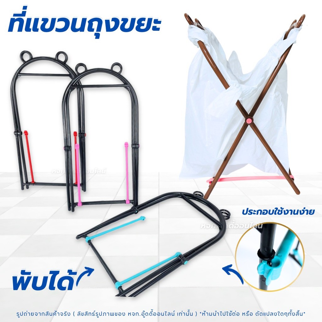 ขาแขวนถุงขยะ พับเก็บได้ พลาสติกแข็งแรง ที่แขวนถุงขยะ ขาแขวนถุงขยะแบบพกพา น้ำหนักเบา สุ่มสี