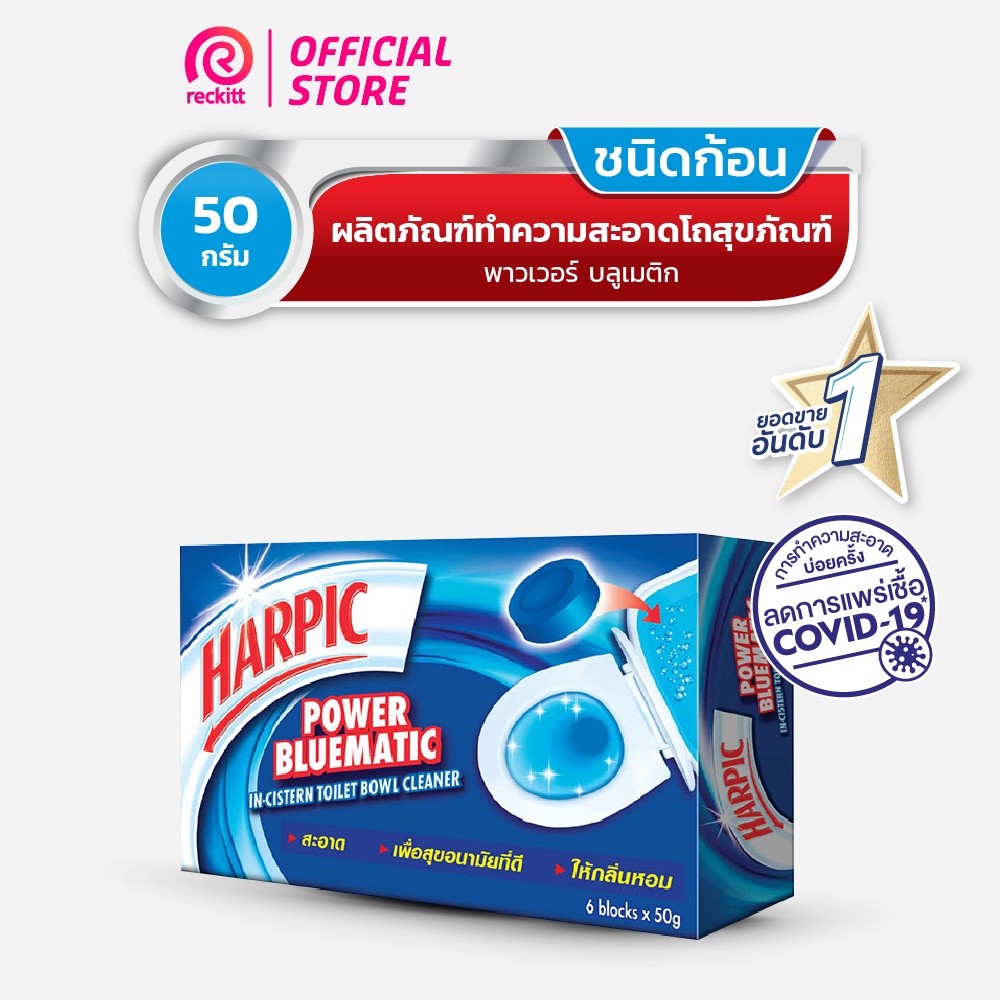 Harpic ฮาร์ปิค พาวเวอร์ บลูเมติก ก้อนทำความสะอาดโถชักโครก 50 กรัม (1 กล่องมี 6 ชิ้น)-1 กล่องมี 6 ชิ้น