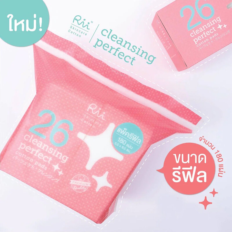 Rii 26 Cleans Perfect Cotton Pads 180pcs [Refill] ริอิ สำลีแผ่นรุ่นนุ่มพิเศษ.