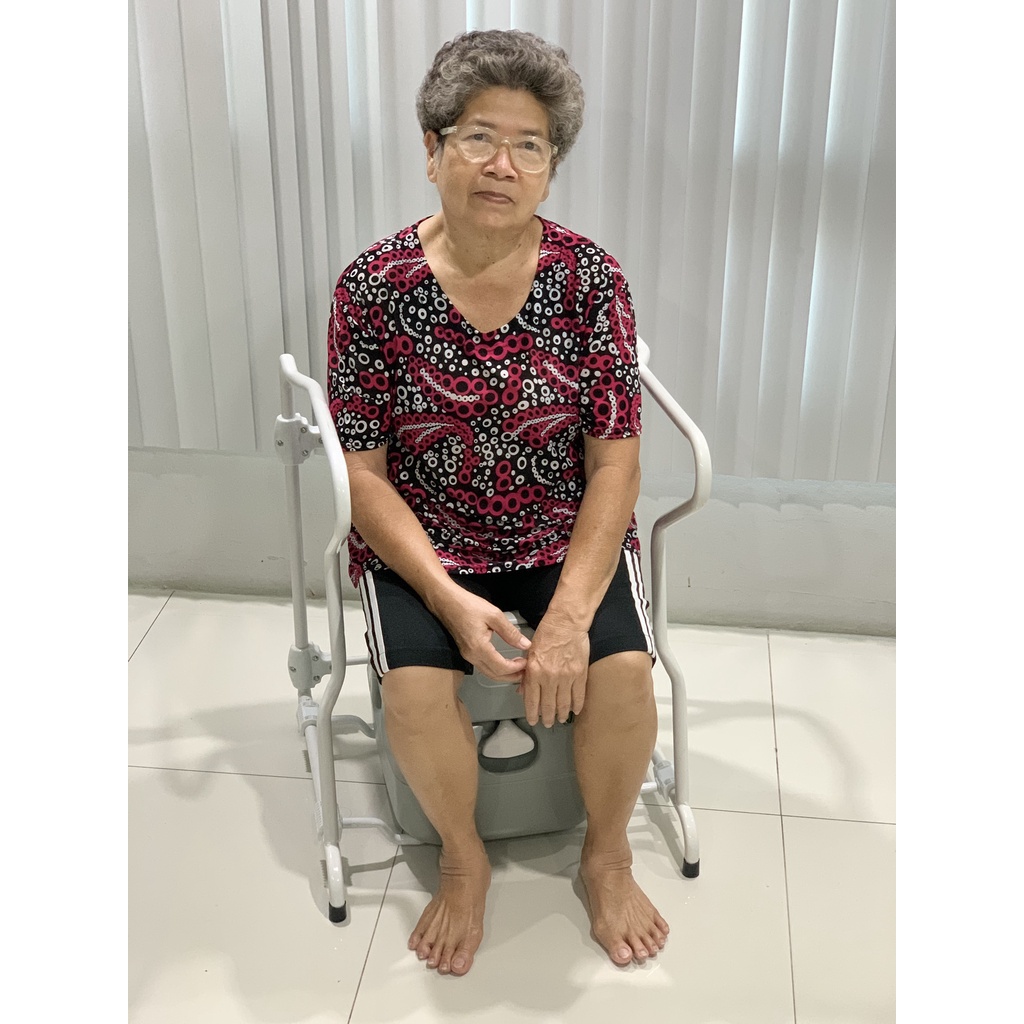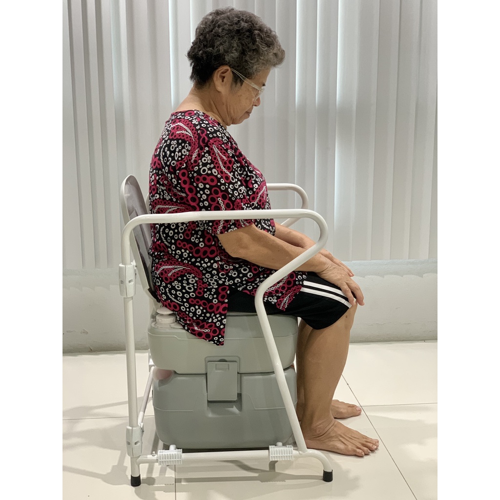 สุขาเคลื่อนที่ Ultimatecare รุ่น Mix พร้อมราวพยุงพับเก็บได้ สำหรับผู้สูงอายุ ผู้ป่วย เก็บกลิ่นได้ดี