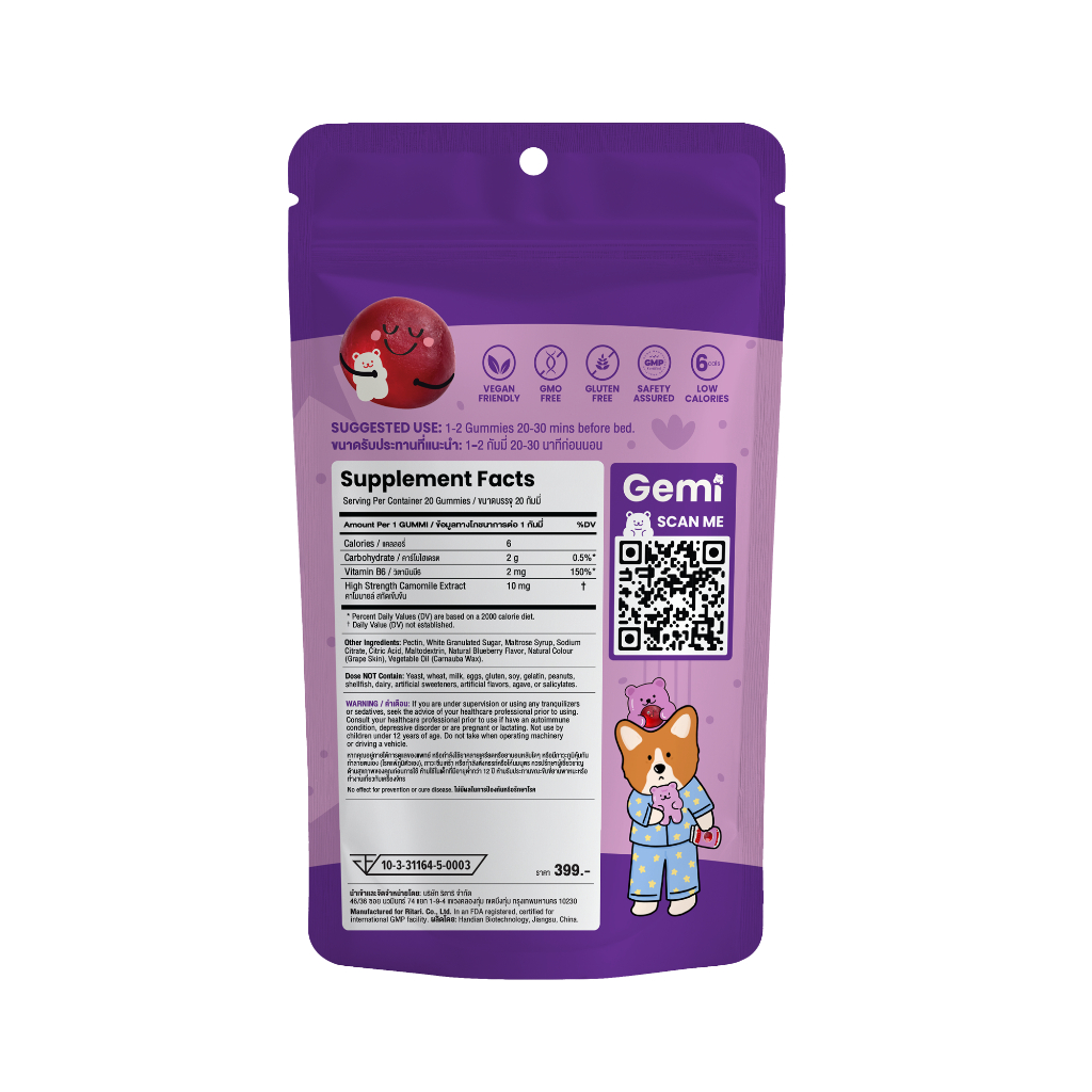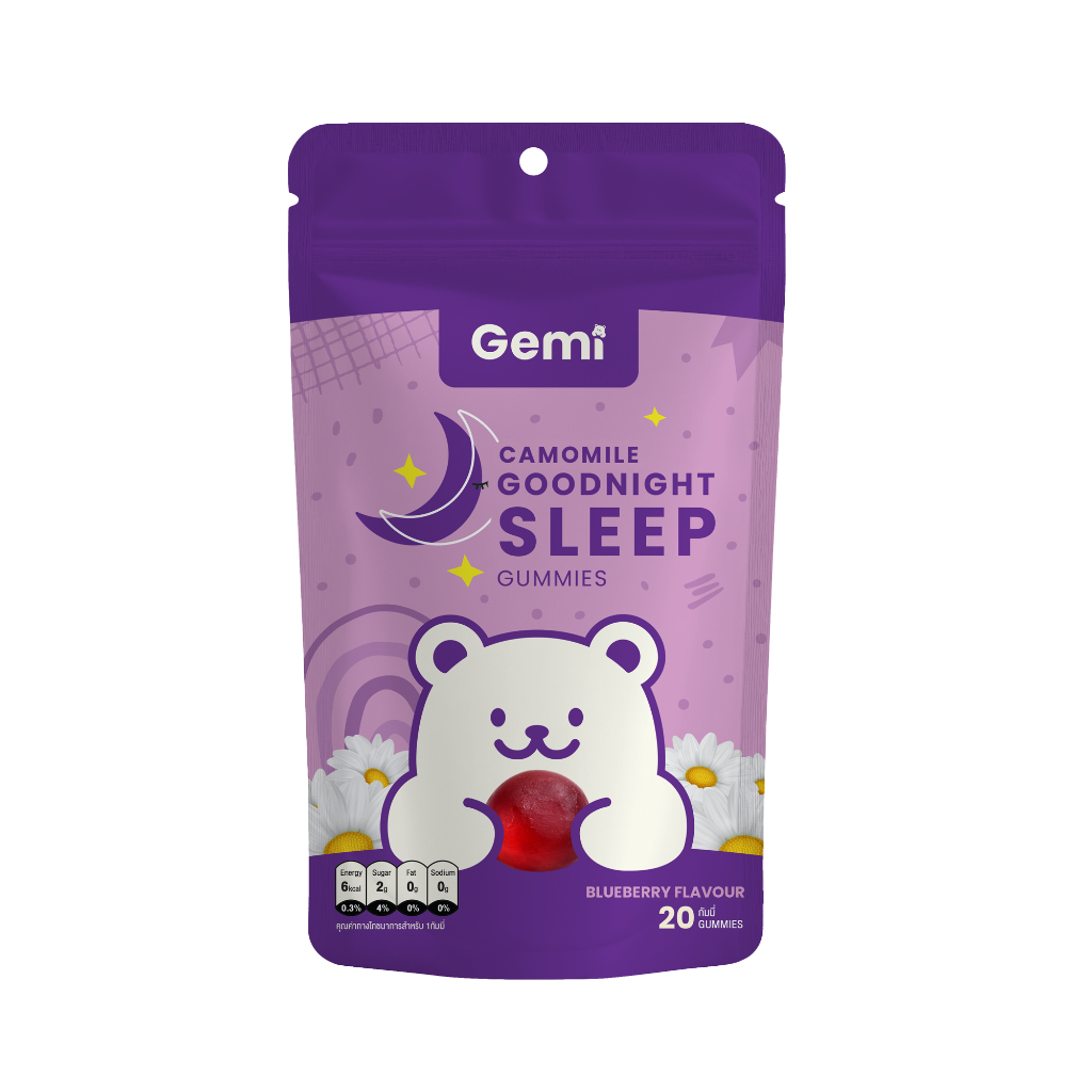 Gemi เจมมี่ กู๊ดไนท์สลีพกัมมี่ แบบซอง 20 เม็ด / Gemi Goodnight Sleep Gummy Medium pack 20 gummies / GemiGummi