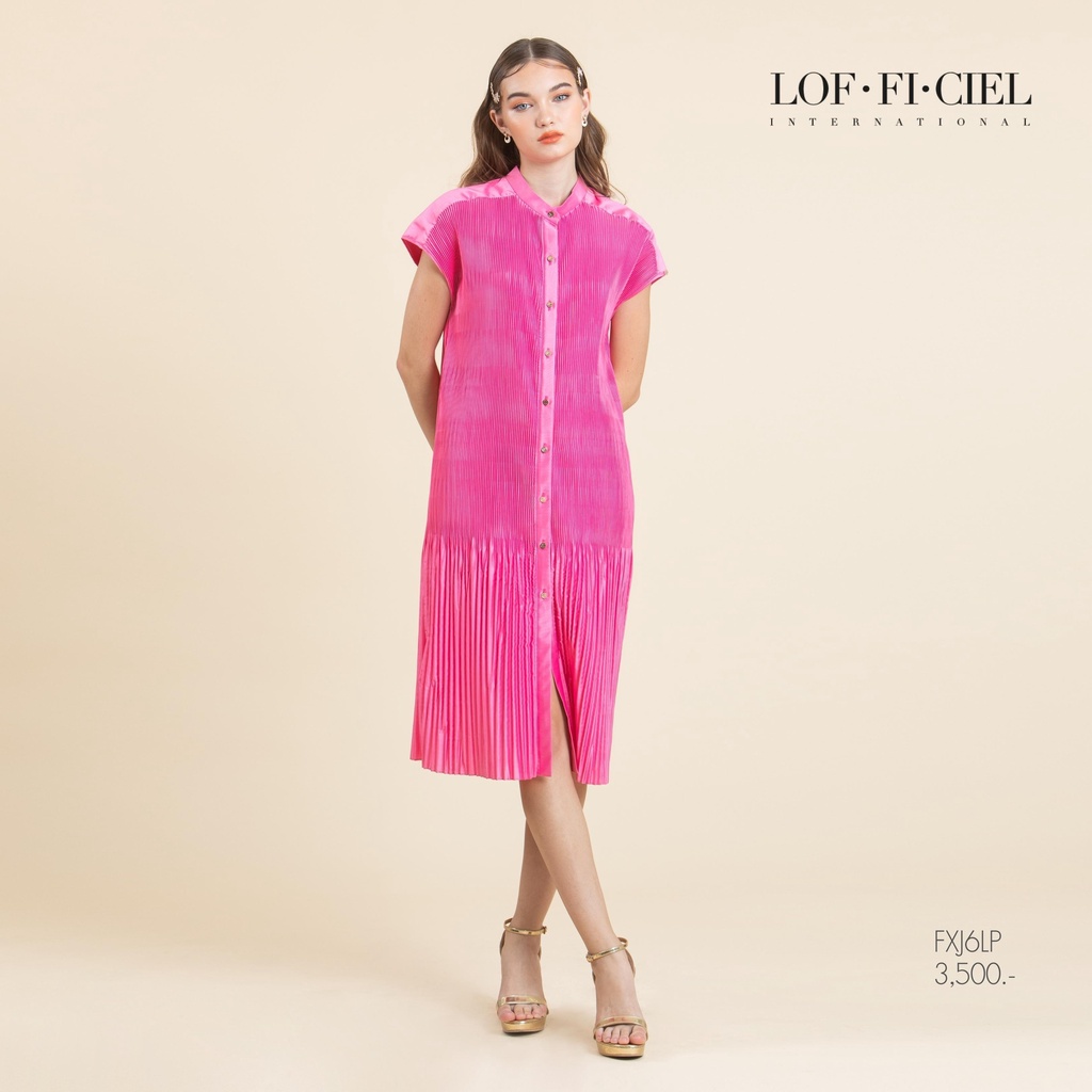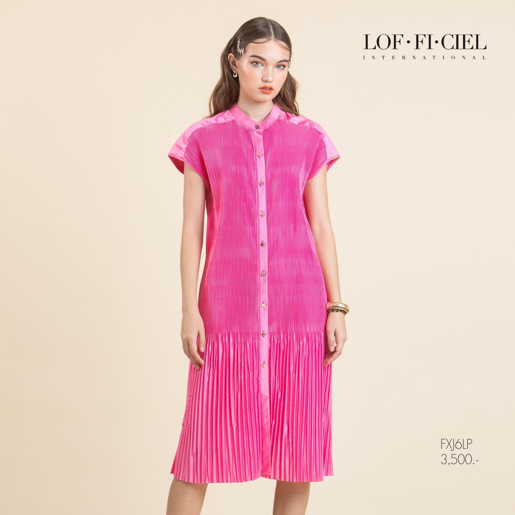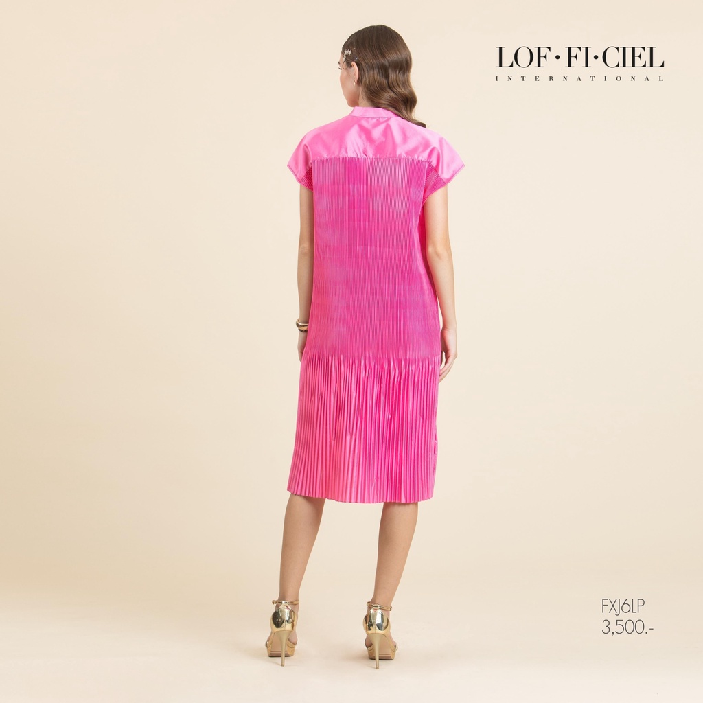 Lofficiel ลอฟฟิเซียล เดรสอัดพลีท ในเนื้อผ้าไหมเทียม โทนสีชมพูสดใส (FXJ6LP)