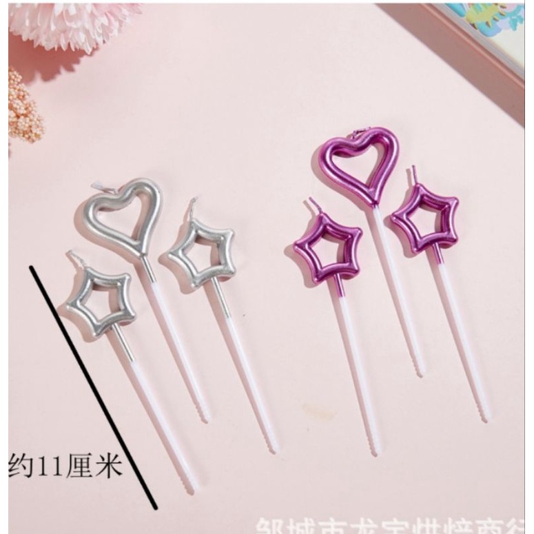 เทียนวันเกิดรูปหัวใจดาว 3ชิ้น/ชุด