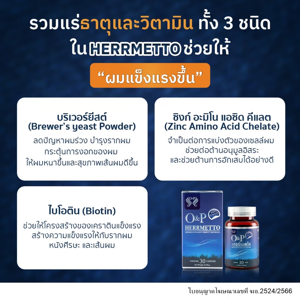 [พร้อมส่ง] HERRMETTO เฮอร์เมตโต อาหารเสริม แก้ปัญหาผมร่วง ผมบาง บรรจุ 60 เม็ด ทานได้ 2 เดือน ส่งฟรี