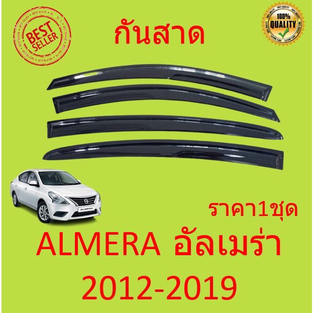 กันสาด ALMERA 2012-19 อัลเมร่า ทรง MUGEN พร้อมกาว 4ชิ้น กันสาดประตู คิ้วกันสาดประตู คิ้วกันสาด