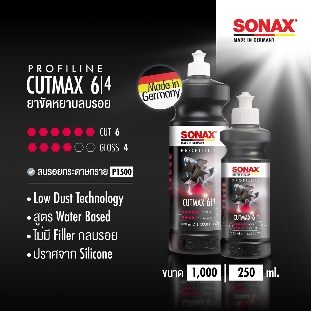 SONAX PROFILINE CUTMAX ยาขัดลบรอย (250 ml) Made in Germany โซแน็กซ์ คัทแม็กซ์ ลบรอยขนแมว รอยขีดข่วน cut max