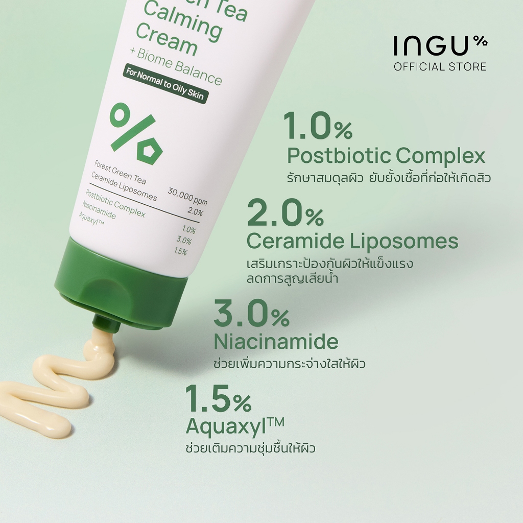 INGU Green Tea Calming Cream + Biome Balance มอยซ์เจอร์ไรเซอร์ สำหรับผิวผสม