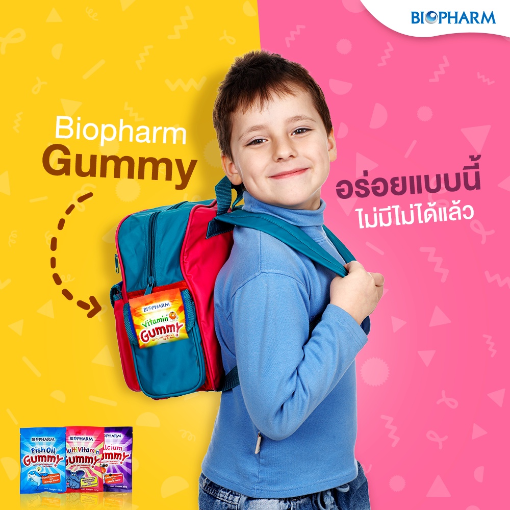 Biopharm Gummyกัมมี่ เสริมอาหาร แคลเซียม น้ำมันปลา วิตามิน ไฟเบอร์ แบบซองยกกล่อง12ซอง