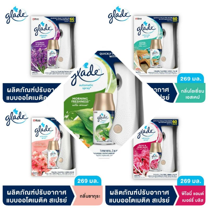 เกลดออโตเมติกสเปรปรับอากาศอัตโนมัติ 3in1 gladeautomatic sprey airfreshner 269ml.(เครื่อง+ถ่าน+รีฟิล)